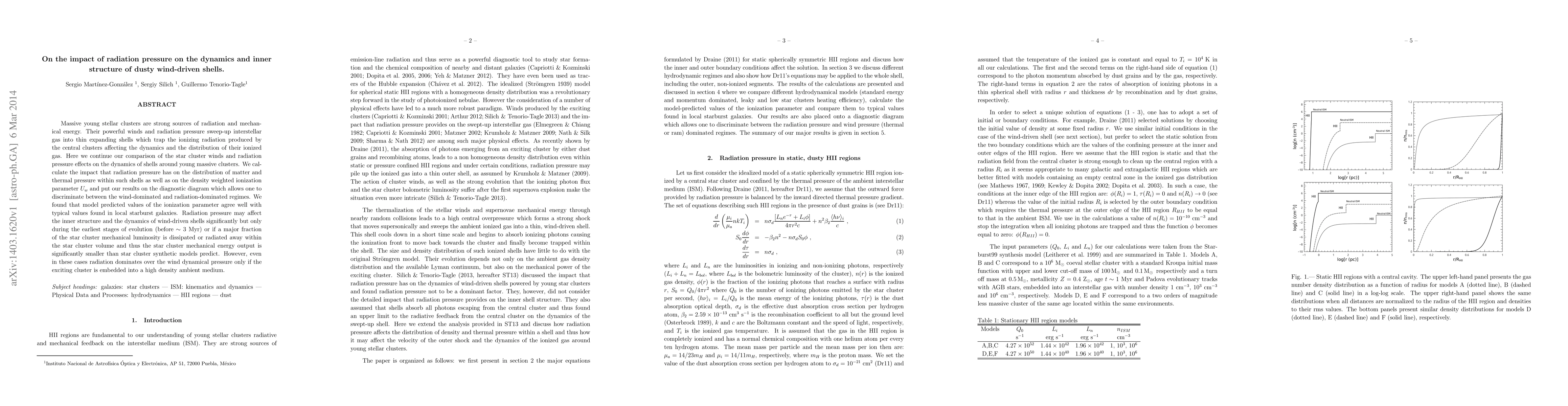 Massive young stellar clusters are strong sources of radiation and mechanical energy. Their powerful winds and radiation pressure sweep-up interstellar gas into thin expanding shells which trap the ionizing radiation produced by the central clusters affecting the dynamics and the distribution of their ionized gas. Here we continue our comparison of the star cluster winds and radiation pressure effects on the dynamics of shells around young massive clusters. We calculate the impact that radiation pressure has on the distribution of matter and thermal pressure within such shells as well as on the density weighted ionization parameter $U_w$ and put our results on the diagnostic diagram which allows one to discriminate between the wind-dominated and radiation-dominated regimes. We found that model predicted values of the ionization parameter agree well with typical values found in local starburst galaxies. Radiation pressure may affect the inner structure and the dynamics of wind-driven shells only at the earliest stages of evolution or if a major fraction of the star cluster mechanical luminosity is dissipated or radiated away within the star cluster volume and thus the star cluster mechanical energy output is significantly smaller than star cluster synthetic models predict. However, even in these cases radiation dominates over the wind dynamical pressure only if the exciting cluster is embedded into a high density ambient medium.