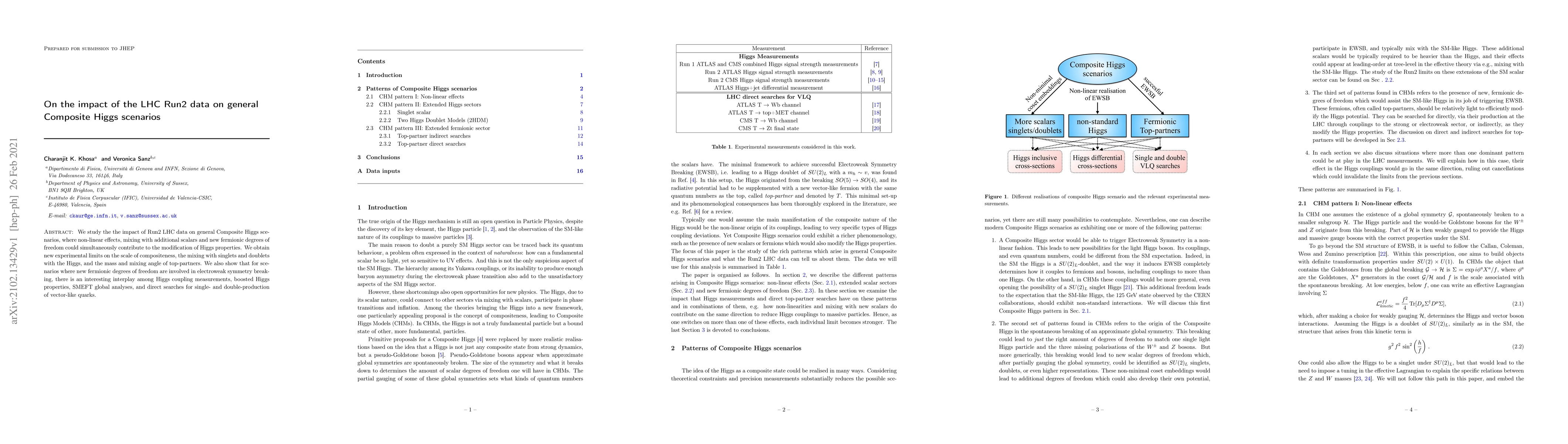 We study the the impact of Run2 LHC data on general Composite Higgs scenarios, where non-linear effects, mixing with additional scalars and new fermionic degrees of freedom could simultaneously contribute to the modification of Higgs properties. We obtain new experimental limits on the scale of compositeness, the mixing with singlets and doublets with the Higgs, and the mass and mixing angle of top-partners. We also show that for scenarios where new fermionic degrees of freedom are involved in electroweak symmetry breaking, there is an interesting interplay among Higgs coupling measurements, boosted Higgs properties, SMEFT global analyses, and direct searches for single- and double-production of vector-like quarks.