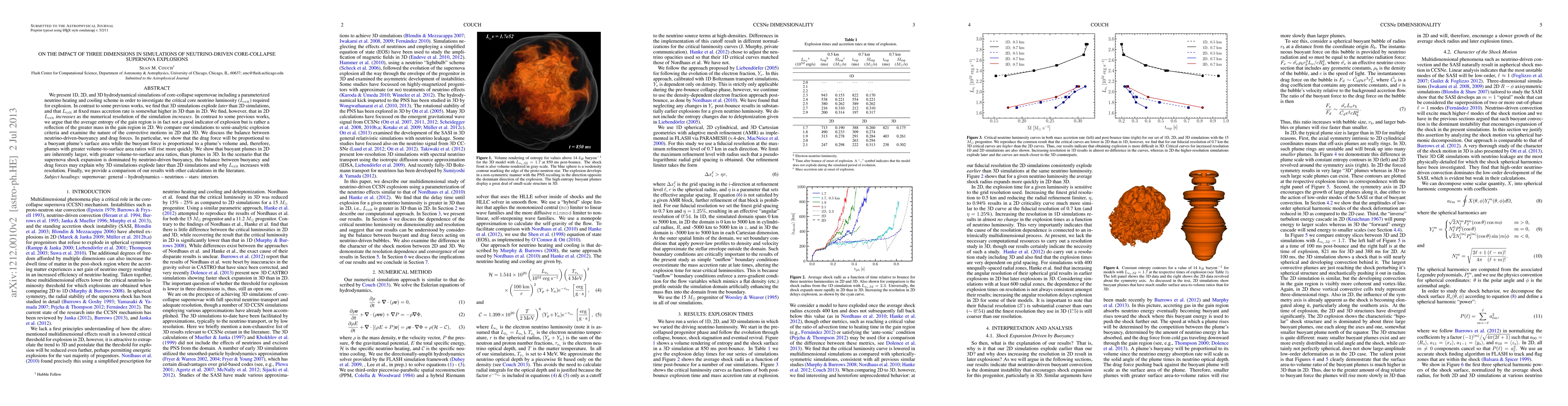 Researchers used 1D, 2D, and 3D simulations to study neutrino-driven core-collapse supernova explosions, finding that 3D simulations explode later than 2D simulations and that critical luminosity increases with resolution.
