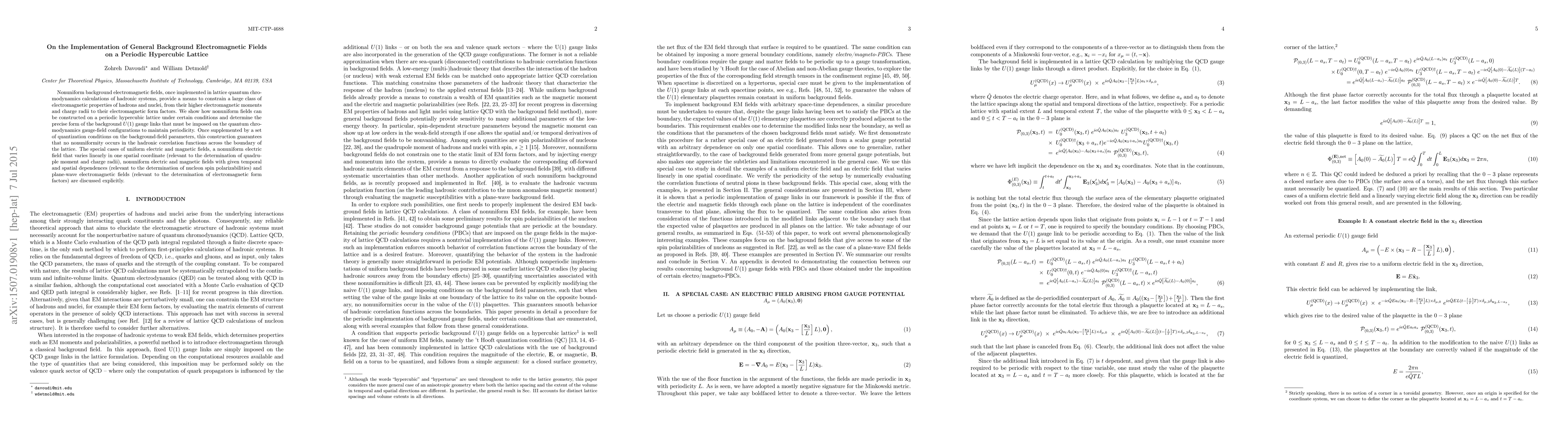 Nonuniform background electromagnetic fields, once implemented in lattice quantum chromodynamics calculations of hadronic systems, provide a means to constrain a large class of electromagnetic properties of hadrons and nuclei, from their higher electromagnetic moments and charge radii to their electromagnetic form factors. We show how nonuniform fields can be constructed on a periodic hypercubic lattice under certain conditions and determine the precise form of the background U(1) gauge links that must be imposed on the quantum chromodynamics gauge-field configurations to maintain periodicity. Once supplemented by a set of quantization conditions on the background-field parameters, this construction guarantees that no nonuniformity occurs in the hadronic correlation functions across the boundary of the lattice. The special cases of uniform electric and magnetic fields, a nonuniform electric field that varies linearly in one spatial coordinate (relevant to the determination of quadruple moment and charge radii), nonuniform electric and magnetic fields with given temporal and spatial dependences (relevant to the determination of nucleon spin polarizabilities) and plane-wave electromagnetic fields (relevant to the determination of electromagnetic form factors) are discussed explicitly.