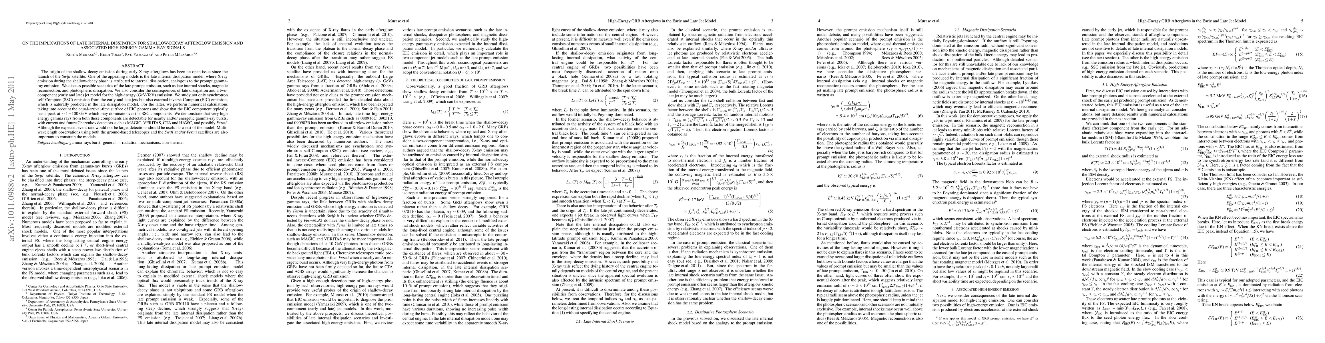 Researchers investigate the late internal dissipation model for shallow-decay afterglow emission, finding that high-energy gamma-ray signals can be explained by external inverse-Compton emission, which may dominate over synchrotron self-Compton emission.