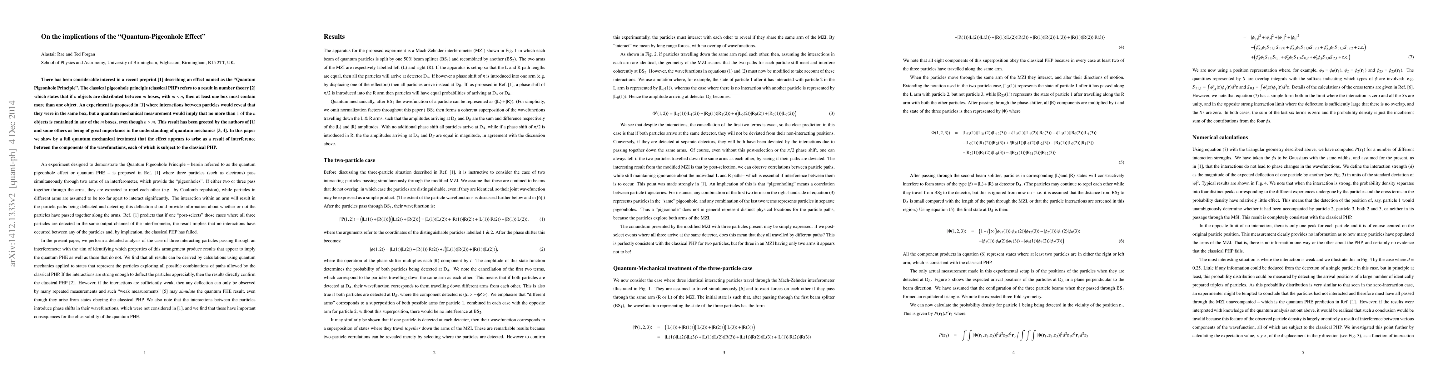 There has been considerable interest in a recent preprint - arXiv/1407.3194 - describing an effect named as the Quantum Pigeonhole Principle. The classical pigeonhole principle (classical PHP) refers to a result in number theory which states that if n objects are distributed between m boxes, with m less than n, then at least one box must contain more than one object. An experiment is proposed in the preprint where interactions between particles would reveal that they were in the same box, but a quantum mechanical measurement would imply that no more than 1 of the n objects is contained in any of the m boxes, even though n is greater than m. This result has been greeted by the authors of the preprint and some others as being of great importance in the understanding of quantum mechanics. In this paper we show by a full quantum mechanical treatment that the effect appears to arise as a result of interference between the components of the wavefunctions, each of which is subject to the classical PHP.