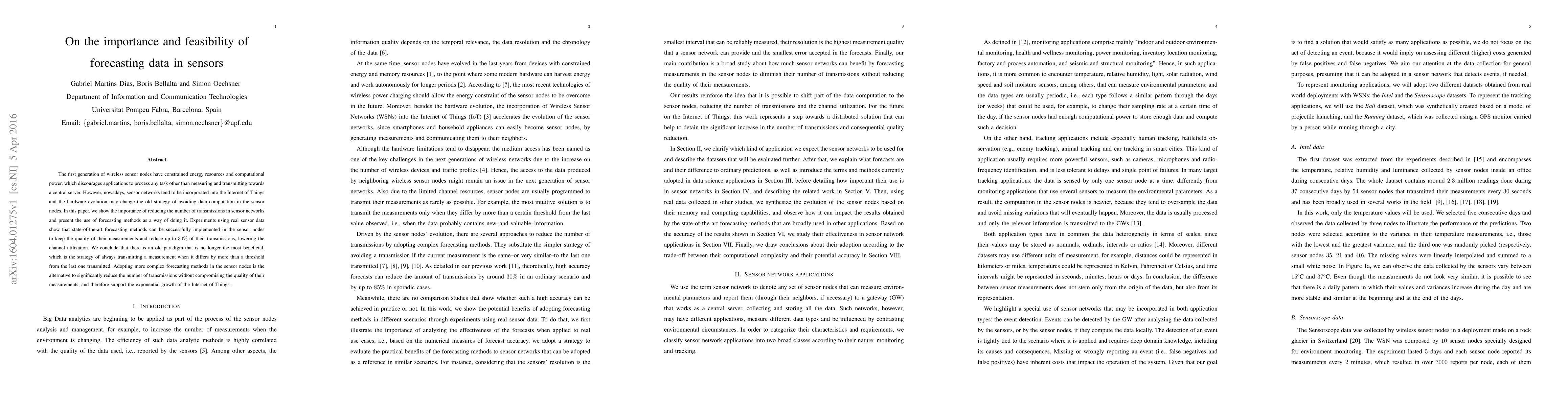 The first generation of wireless sensor nodes have constrained energy resources and computational power, which discourages applications to process any task other than measuring and transmitting towards a central server. However, nowadays, sensor networks tend to be incorporated into the Internet of Things and the hardware evolution may change the old strategy of avoiding data computation in the sensor nodes. In this paper, we show the importance of reducing the number of transmissions in sensor networks and present the use of forecasting methods as a way of doing it. Experiments using real sensor data show that state-of-the-art forecasting methods can be successfully implemented in the sensor nodes to keep the quality of their measurements and reduce up to 30% of their transmissions, lowering the channel utilization. We conclude that there is an old paradigm that is no longer the most beneficial, which is the strategy of always transmitting a measurement when it differs by more than a threshold from the last one transmitted. Adopting more complex forecasting methods in the sensor nodes is the alternative to significantly reduce the number of transmissions without compromising the quality of their measurements, and therefore support the exponential growth of the Internet of Things.