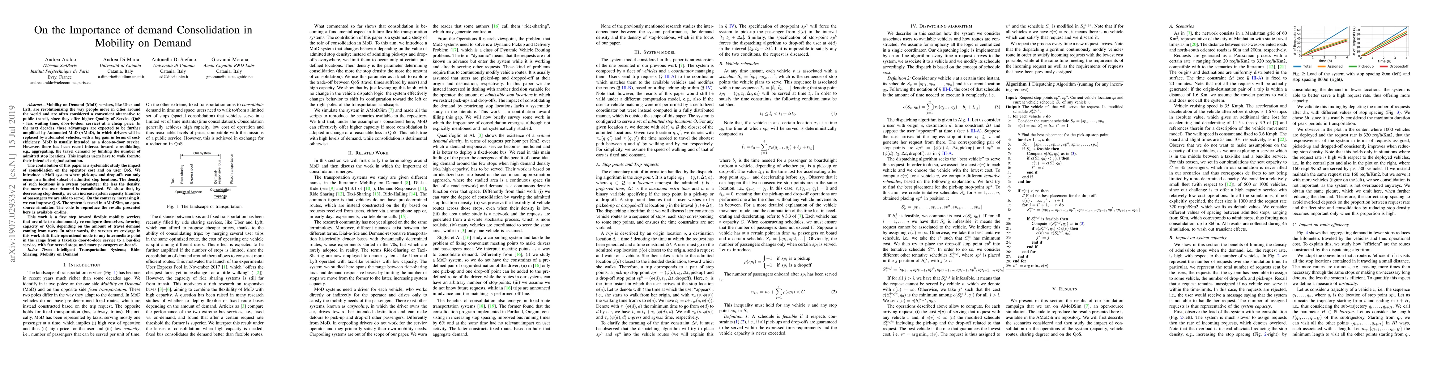 Mobility on Demand (MoD) services, like Uber and Lyft, are revolutionizing the way people move in cities around the world and are often considered a convenient alternative to public transit, since they offer higher Quality of Service (QoS - less waiting time, door-to-door service) at a cheap price. In the next decades, these advantages are expected to be further amplified by Automated MoD (AMoD), in which drivers will be replaced by automated vehicles, with a big gain in terms of cost-efficiency. MoD is usually intended as a door-to-door service. However, there has been recent interest toward consolidating, e.g., aggregating, the travel demand by limiting the number of admitted stop locations. This implies users have to walk from/to their intended origin/destination. The contribution of this paper is a systematic study the impact of consolidation on the operator cost and on user QoS. We introduce a MoD system where pick-ups and drop-offs can only occur in a limited subset of admitted stop locations. The density of such locations is a system parameter: the less the density, the more the user demand is consolidated. We show that, by decreasing stop density, we can increase system capacity (number of passengers we are able to serve). On the contrary, increasing it, we can improve QoS. The system is tested in AMoDSim, an open-source simulator. The code to reproduce the results presented here is available on-line. This work is a first step toward flexible mobility services that are able to autonomously re-configure themselves, favoring capacity or QoS, depending on the amount of travel demand coming from users. In other words, the services we envisage in this work shift their operational mode to any intermediate point in the range from a taxi-like door-to-door service to a bus-like service, with few served stops and more passengers on-board.