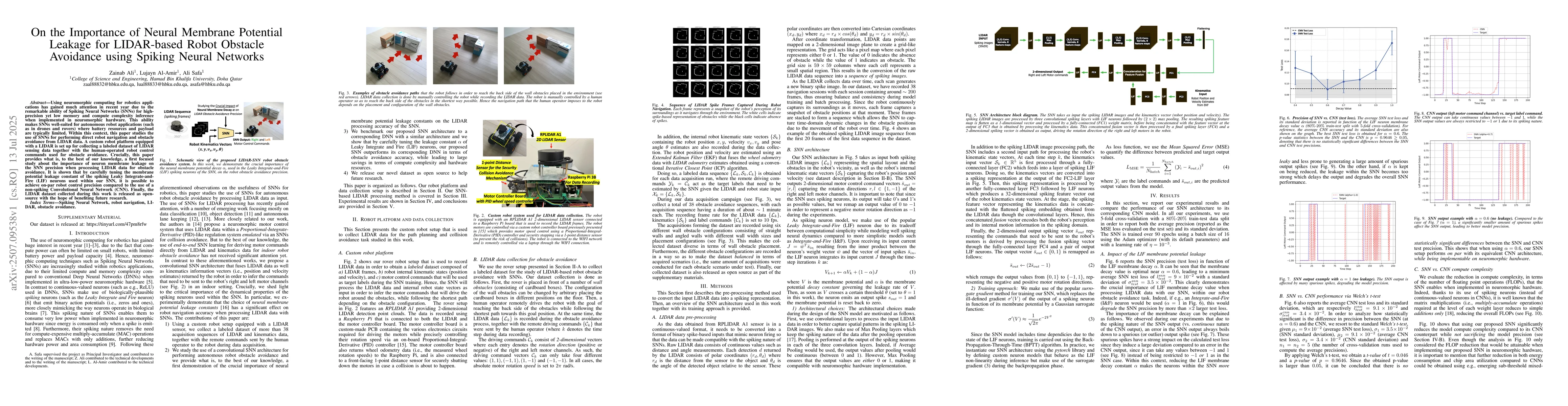 Using neuromorphic computing for robotics applications has gained much attention in recent year due to the remarkable ability of Spiking Neural Networks (SNNs) for high-precision yet low memory and compute complexity inference when implemented in neuromorphic hardware. This ability makes SNNs well-suited for autonomous robot applications (such as in drones and rovers) where battery resources and payload are typically limited. Within this context, this paper studies the use of SNNs for performing direct robot navigation and obstacle avoidance from LIDAR data. A custom robot platform equipped with a LIDAR is set up for collecting a labeled dataset of LIDAR sensing data together with the human-operated robot control commands used for obstacle avoidance. Crucially, this paper provides what is, to the best of our knowledge, a first focused study about the importance of neuron membrane leakage on the SNN precision when processing LIDAR data for obstacle avoidance. It is shown that by carefully tuning the membrane potential leakage constant of the spiking Leaky Integrate-and-Fire (LIF) neurons used within our SNN, it is possible to achieve on-par robot control precision compared to the use of a non-spiking Convolutional Neural Network (CNN). Finally, the LIDAR dataset collected during this work is released as open-source with the hope of benefiting future research.