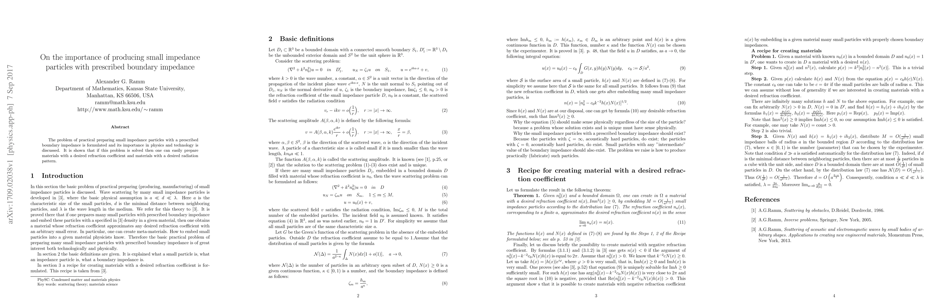 The problem of practical preparing small impedance particles with a prescribed boundary impedance is formulated and its importance in physics and technology is discussed. It is shown that if this problem is solved then one can easily prepare materials with a desired refraction coefficient and materials with a desired radiation pattern.