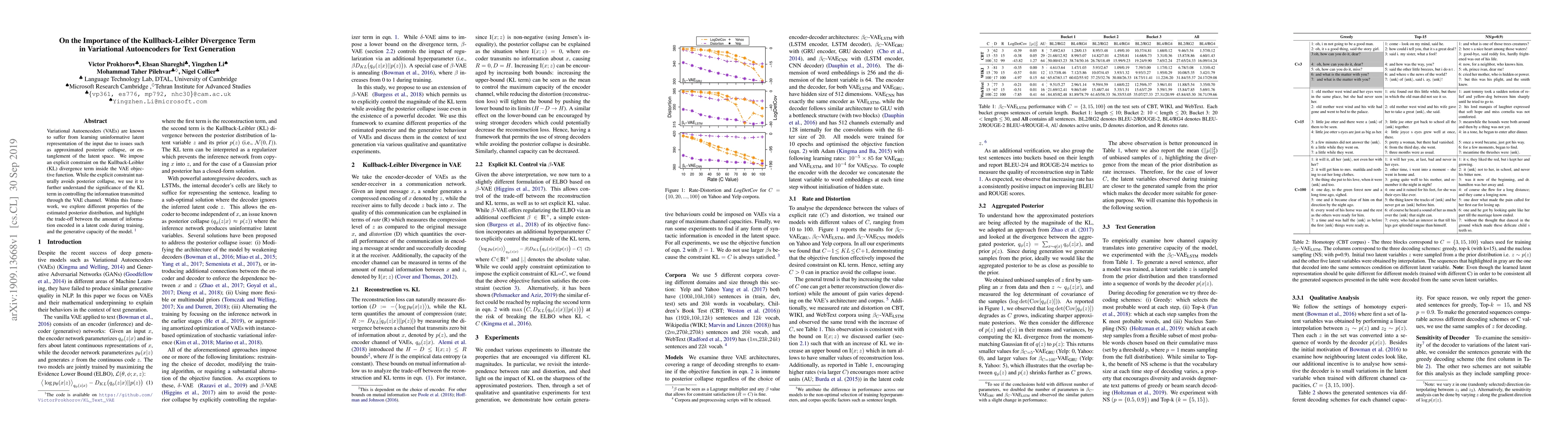 This paper investigates the role of the Kullback-Leibler divergence term in Variational Autoencoders (VAEs) to prevent posterior collapse and improve latent representation. It highlights the trade-off between information encoding and generative capacity, emphasizing the KL term's significance in controlling information flow.