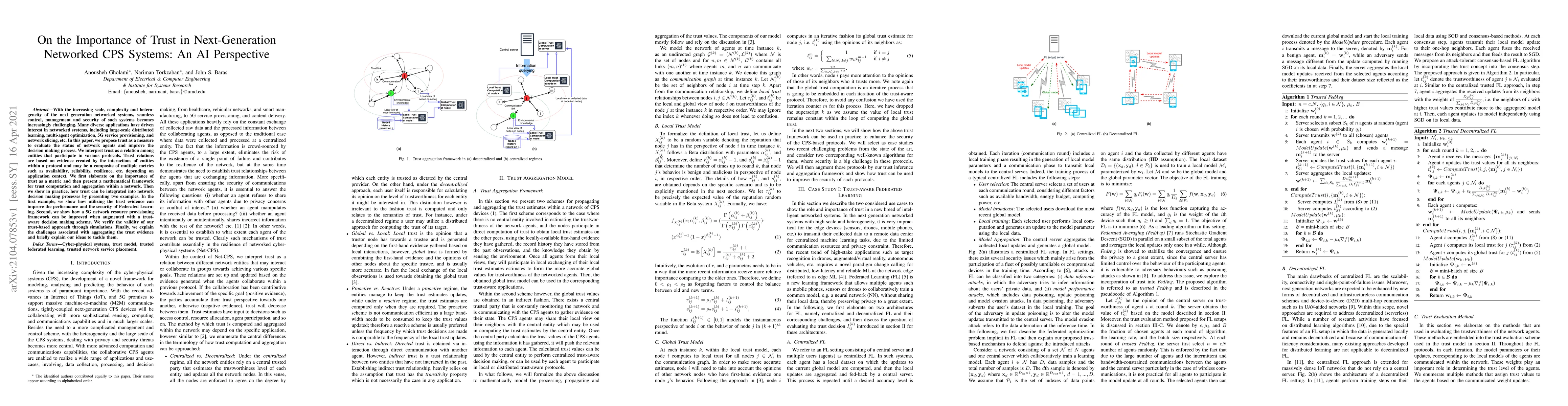 This paper proposes trust as a critical measure for evaluating network agents in next-generation networked systems, enhancing decision-making processes. It presents a mathematical framework for trust computation and demonstrates its application in Federated Learning and 5G network resource provisioning, showing improved performance and security, validated through simulations.