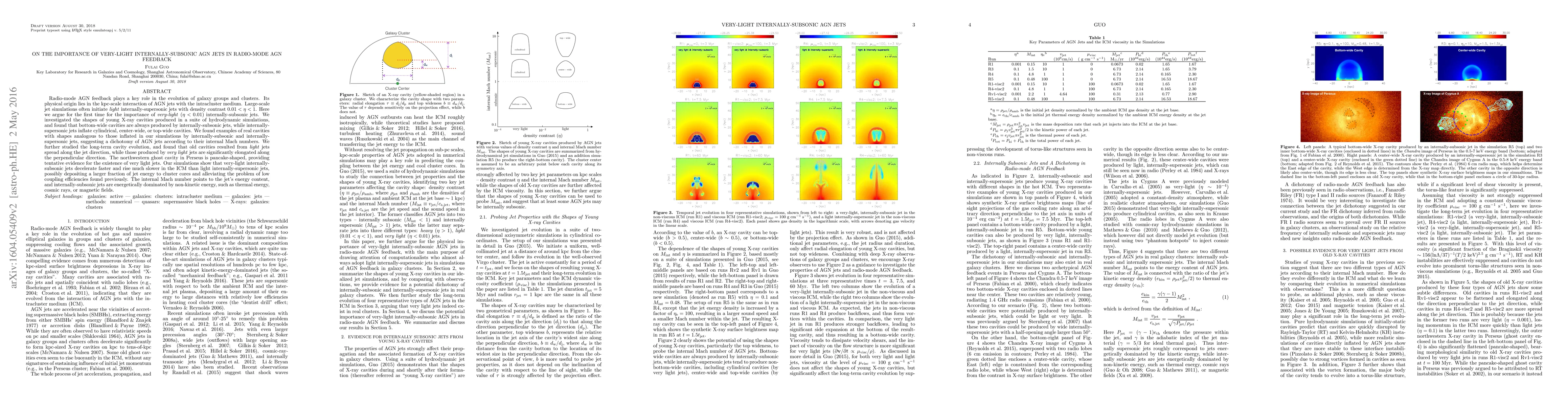 Radio-mode AGN feedback plays a key role in the evolution of galaxy groups and clusters. Its physical origin lies in the kpc-scale interaction of AGN jets with the intracluster medium. Large-scale jet simulations often initiate light internally-supersonic jets with density contrast $0.01<\eta<1$. Here we argue for the first time for the importance of very-light ($\eta<0.01$) internally-subsonic jets. We investigated the shapes of young X-ray cavities produced in a suite of hydrodynamic simulations, and found that bottom-wide cavities are always produced by internally-subsonic jets, while internally-supersonic jets inflate cylindrical, center-wide, or top-wide cavities. We found examples of real cavities with shapes analogous to those inflated in our simulations by internally-subsonic and internally-supersonic jets, suggesting a dichotomy of AGN jets according to their internal Mach numbers. We further studied the long-term cavity evolution, and found that old cavities resulted from light jets spread along the jet direction, while those produced by very light jets are significantly elongated along the perpendicular direction. The northwestern ghost cavity in Perseus is pancake-shaped, providing tentative evidence for the existence of very light jets. Our simulations show that very-light internally-subsonic jets decelerate faster and rise much slower in the ICM than light internally-supersonic jets, possibly depositing a larger fraction of jet energy to cluster cores and alleviating the problem of low coupling efficiencies found previously. The internal Mach number points to the jet's energy content, and internally-subsonic jets are energetically dominated by non-kinetic energy, such as thermal energy, cosmic rays, or magnetic fields.