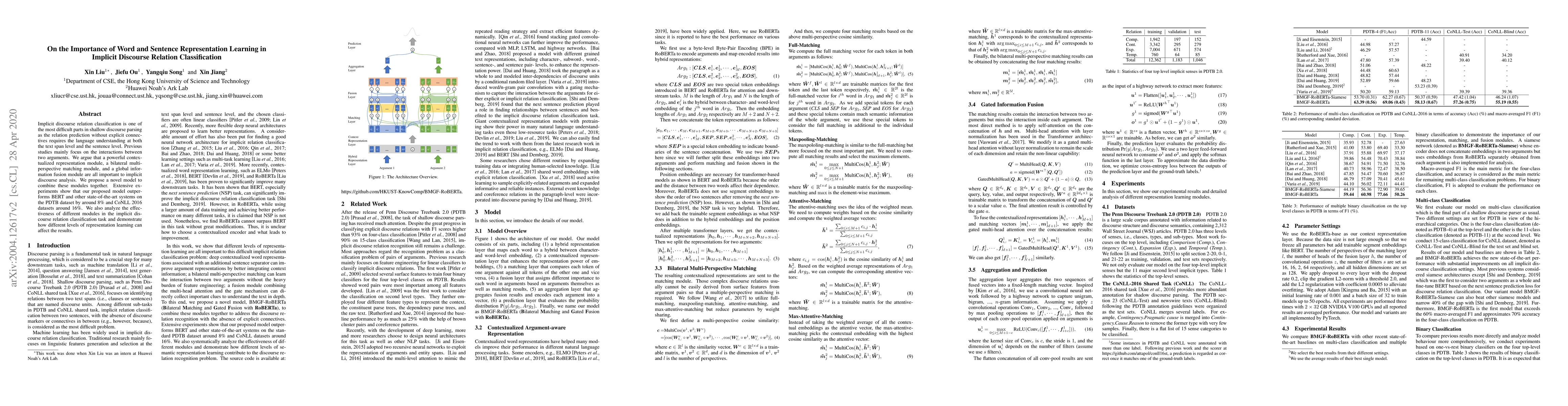 This paper proposes a novel model integrating contextualized representation, bilateral multi-perspective matching, and global information fusion for implicit discourse relation classification, outperforming BERT and other state-of-the-art systems on multiple datasets. The study highlights the significance of different representation learning levels in improving classification accuracy.