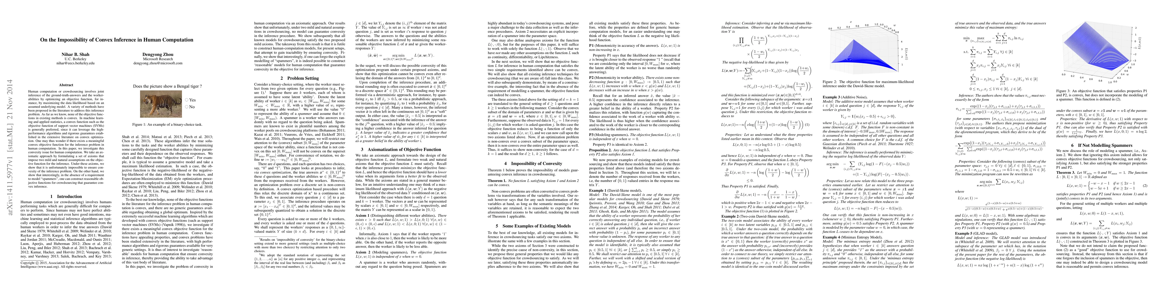 Human computation or crowdsourcing involves joint inference of the ground-truth-answers and the worker-abilities by optimizing an objective function, for instance, by maximizing the data likelihood based on an assumed underlying model. A variety of methods have been proposed in the literature to address this inference problem. As far as we know, none of the objective functions in existing methods is convex. In machine learning and applied statistics, a convex function such as the objective function of support vector machines (SVMs) is generally preferred, since it can leverage the high-performance algorithms and rigorous guarantees established in the extensive literature on convex optimization. One may thus wonder if there exists a meaningful convex objective function for the inference problem in human computation. In this paper, we investigate this convexity issue for human computation. We take an axiomatic approach by formulating a set of axioms that impose two mild and natural assumptions on the objective function for the inference. Under these axioms, we show that it is unfortunately impossible to ensure convexity of the inference problem. On the other hand, we show that interestingly, in the absence of a requirement to model "spammers", one can construct reasonable objective functions for crowdsourcing that guarantee convex inference.