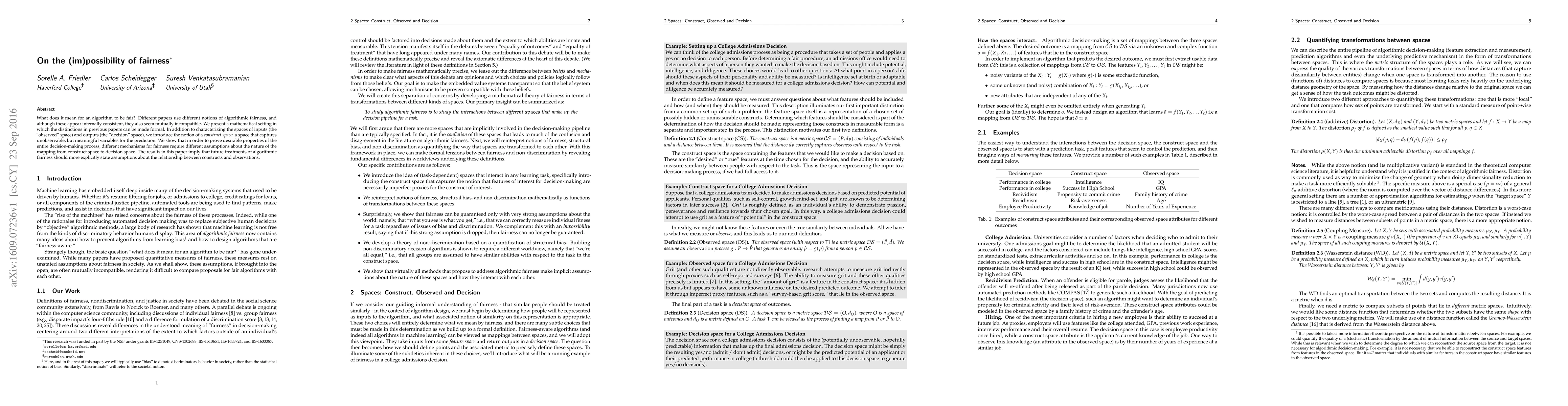 A new paper explores how fairness in algorithms depends on assumptions about the relationship between unobservable variables (construct space) and observable inputs (decision space), highlighting the need for clearer definitions of fairness in algorithmic design.