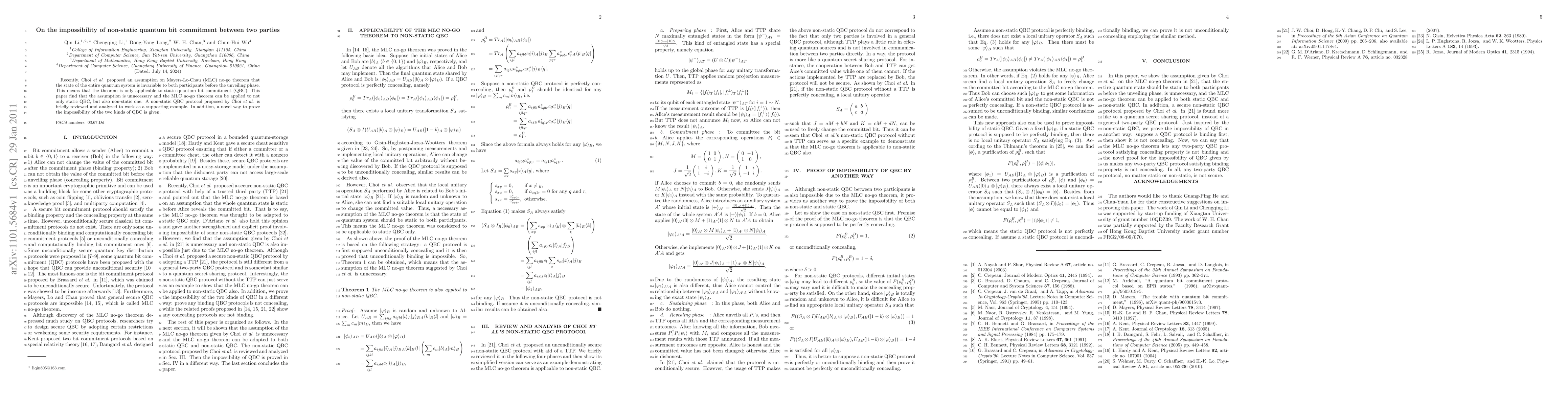 Recently, Choi \emph{et al}. proposed an assumption on Mayers-Lo-Chau (MLC) no-go theorem that the state of the entire quantum system is invariable to both participants before the unveiling phase. This means that the theorem is only applicable to static quantum bit commitment (QBC). This paper find that the assumption is unnecessary and the MLC no-go theorem can be applied to not only static QBC, but also non-static one. A non-static QBC protocol proposed by Choi \emph{et al.} is briefly reviewed and analyzed to work as a supporting example. In addition, a novel way to prove the impossibility of the two kinds of QBC is given.