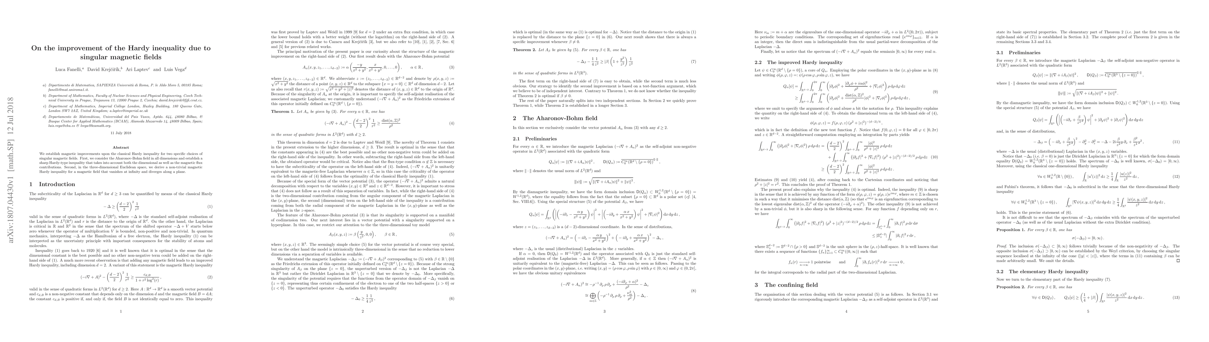 We establish magnetic improvements upon the classical Hardy inequality for two specific choices of singular magnetic fields. First, we consider the Aharonov-Bohm field in all dimensions and establish a sharp Hardy-type inequality that takes into account both the dimensional as well as the magnetic flux contributions. Second, in the three-dimensional Euclidean space, we derive a non-trivial magnetic Hardy inequality for a magnetic field that vanishes at infinity and diverges along a plane.