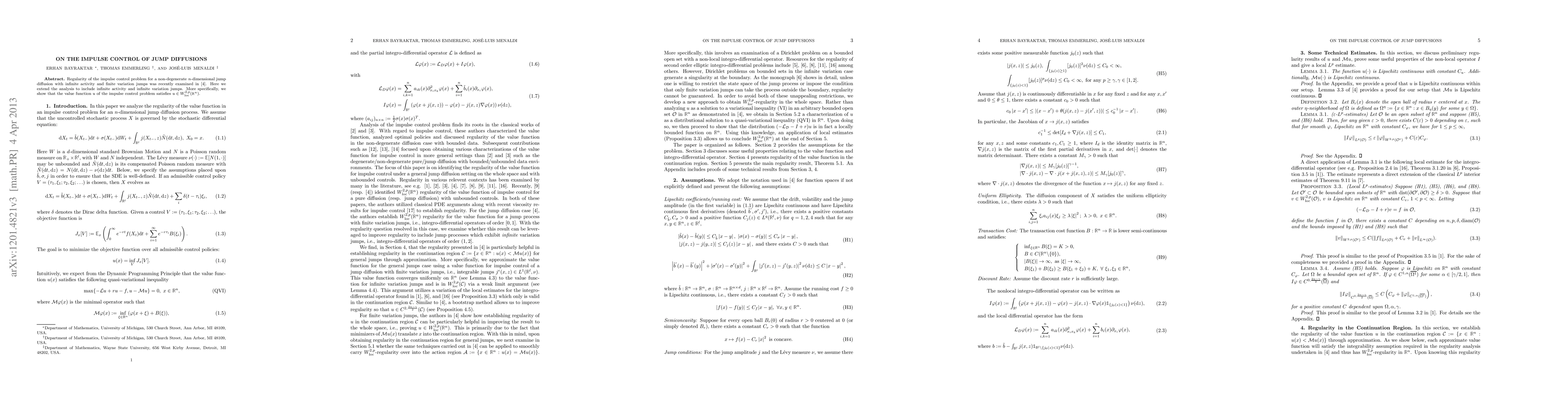 Researchers extend analysis of impulse control problems in jump diffusion models to include infinite activity and variation jumps, finding that the solution value function satisfies a specific local Sobolev space property.