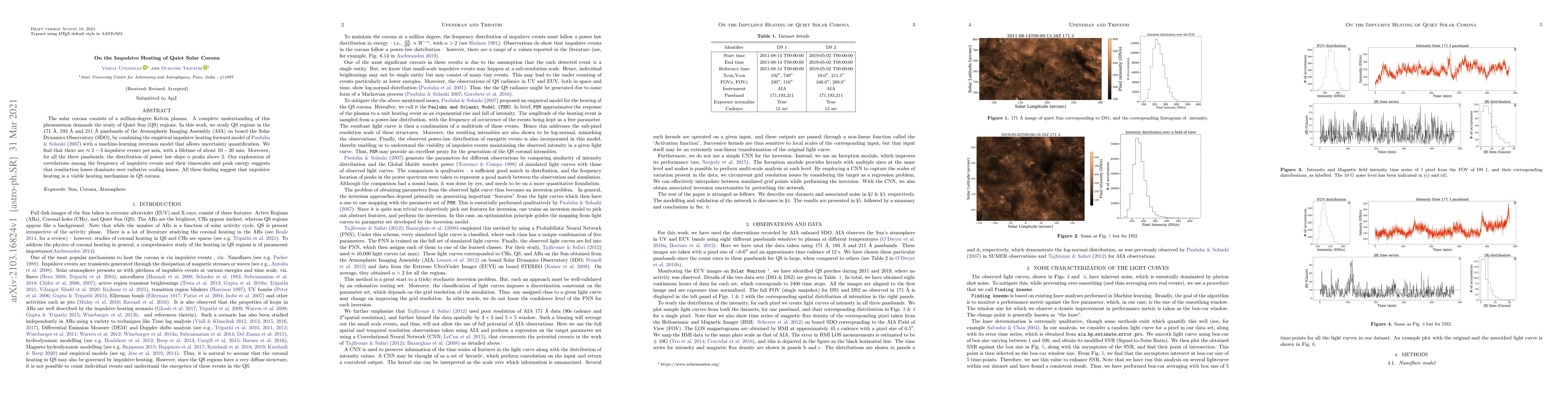 The solar corona consists of a million-degree Kelvin plasma. A complete understanding of this phenomenon demands the study of Quiet Sun (QS) regions. In this work, we study QS regions in the 171 {\AA}, 193 {\AA} and 211 {\AA} passbands of the Atmospheric Imaging Assembly (AIA) on board the Solar Dynamics Observatory (SDO), by combining the empirical impulsive heating forward model of Pauluhn & Solanki (2007) with a machine-learning inversion model that allows uncertainty quantification. We find that there are {\approx} 2--3 impulsive events per min, with a lifetime of about 10--20 min. Moreover, for all the three passbands, the distribution of power law slope {\alpha} peaks above 2. Our exploration of correlations among the frequency of impulsive events and their timescales and peak energy suggests that conduction losses dominate over radiative cooling losses. All these finding suggest that impulsive heating is a viable heating mechanism in QS corona.