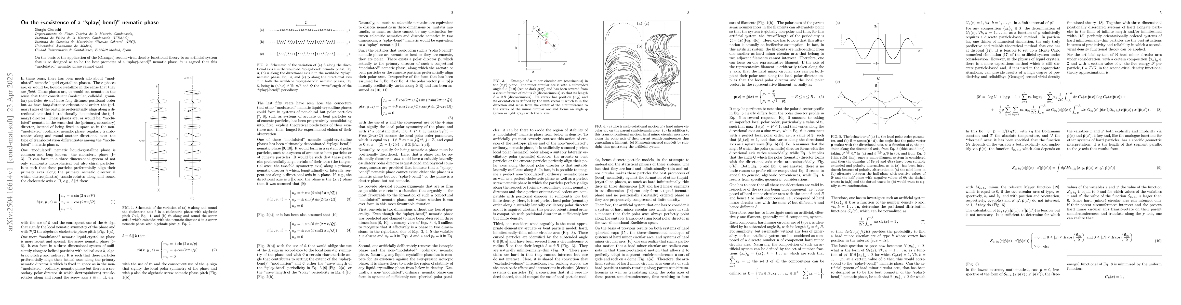 Researchers investigated a proposed nematic phase called 'splay-bend' using density functional theory, concluding that it cannot exist due to its design flaws. They argue that the system is not capable of promoting this modulated phase.