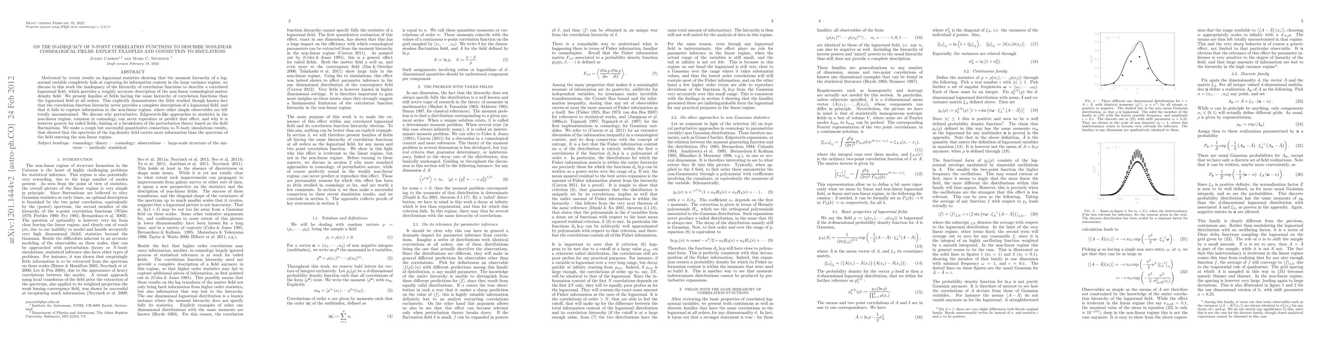 A study shows that N-point correlation functions, commonly used in cosmology to describe nonlinear fields, are inadequate because they fail to capture information in the non-linear regime. This is demonstrated using lognormal statistics as a specific example of a tailed field.
