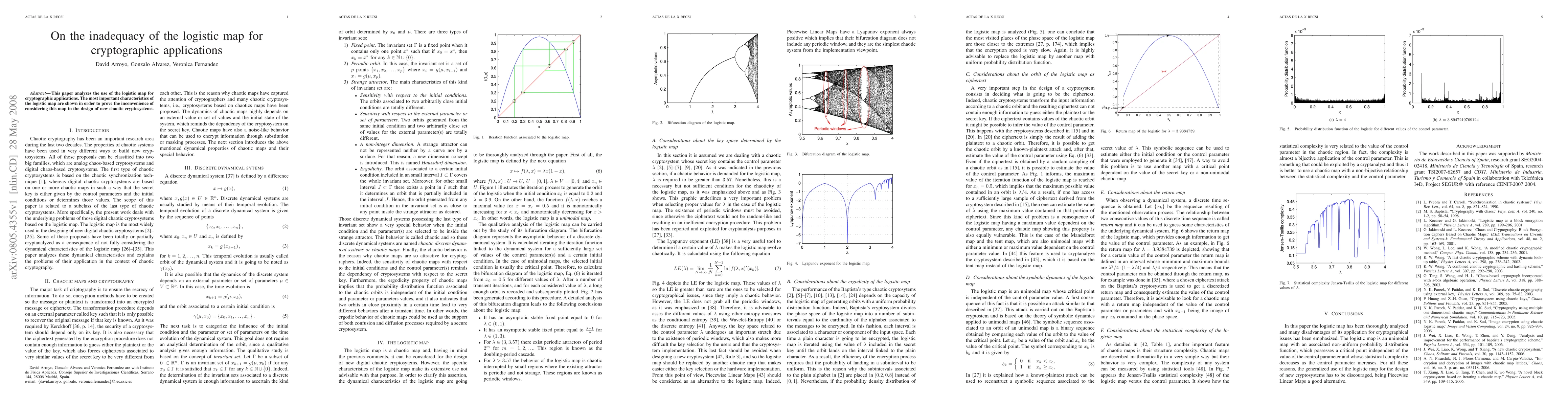 This paper examines the logistic map's suitability for cryptographic applications, demonstrating its inherent weaknesses and arguing against its use in designing new chaotic cryptosystems due to its inadequate characteristics.