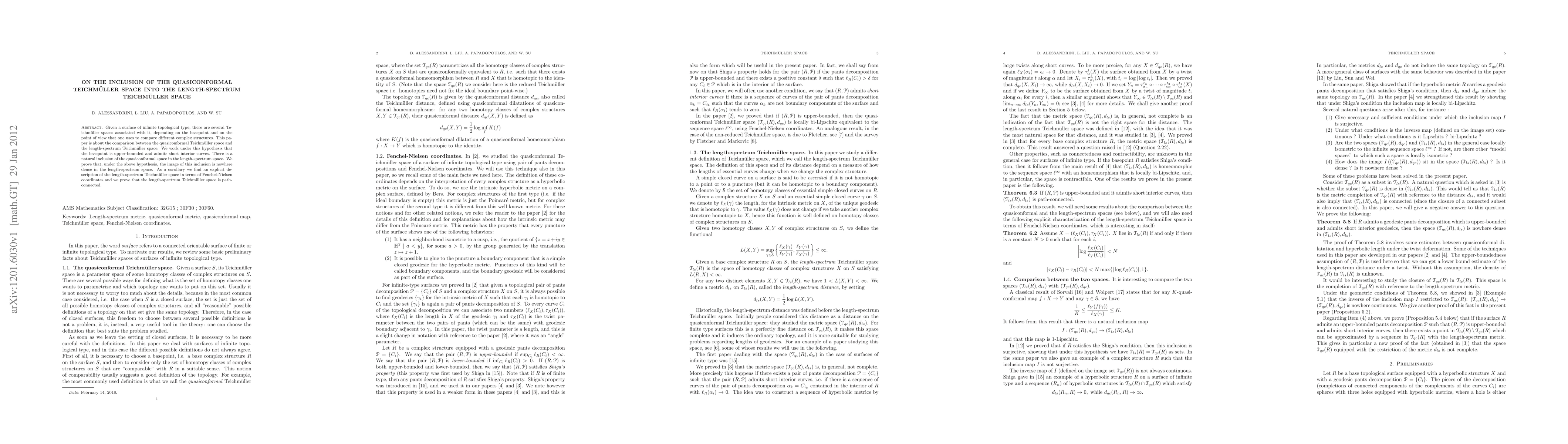 This paper explores the inclusion of the quasiconformal Teichmüller space into the length-spectrum Teichmüller space for surfaces of infinite topological type. It proves that under specific conditions, the quasiconformal space's image in the length-spectrum space is nowhere dense, while also showing the length-spectrum Teichmüller space's path-connectedness and explicit description via Fenchel-Nielsen coordinates.