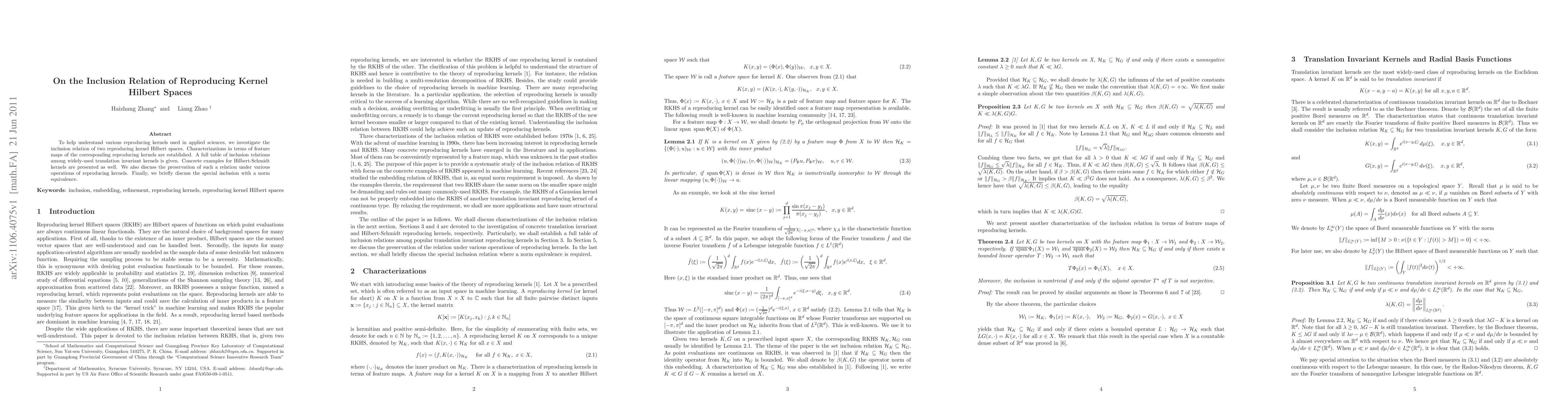 This paper investigates the inclusion relations between different reproducing kernel Hilbert spaces, providing characterizations via feature maps and presenting a comprehensive table of inclusions among common translation invariant kernels. It also discusses the preservation of these relations under various operations and touches on norm equivalence.