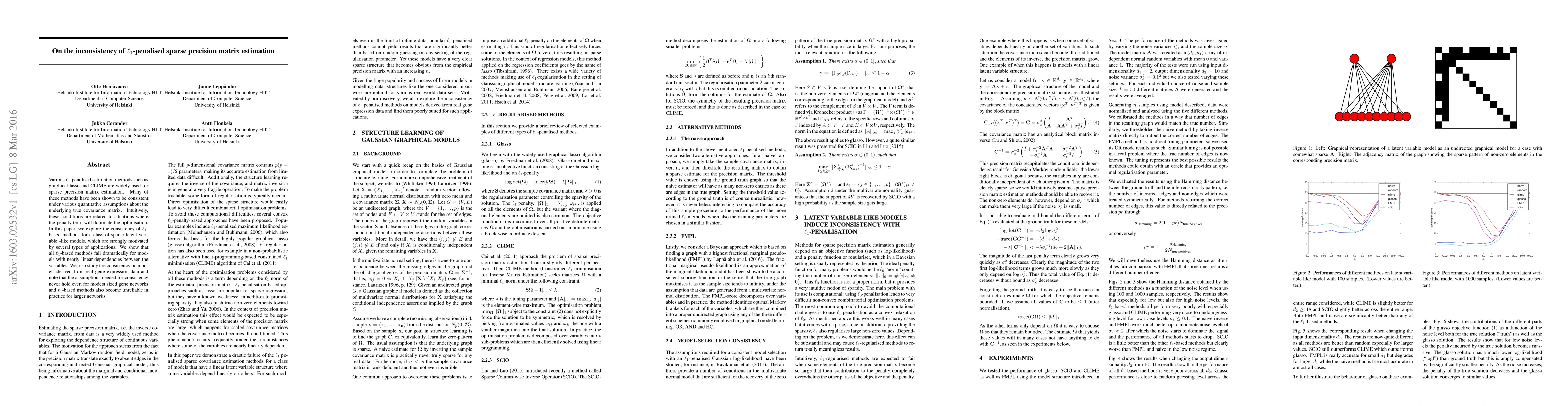 This paper investigates the inconsistency of $\ell_1$-penalised methods for sparse precision matrix estimation, particularly in the context of latent variable models with nearly linear dependencies. It finds that these methods fail dramatically under such conditions and are unreliable even for modest-sized gene networks.
