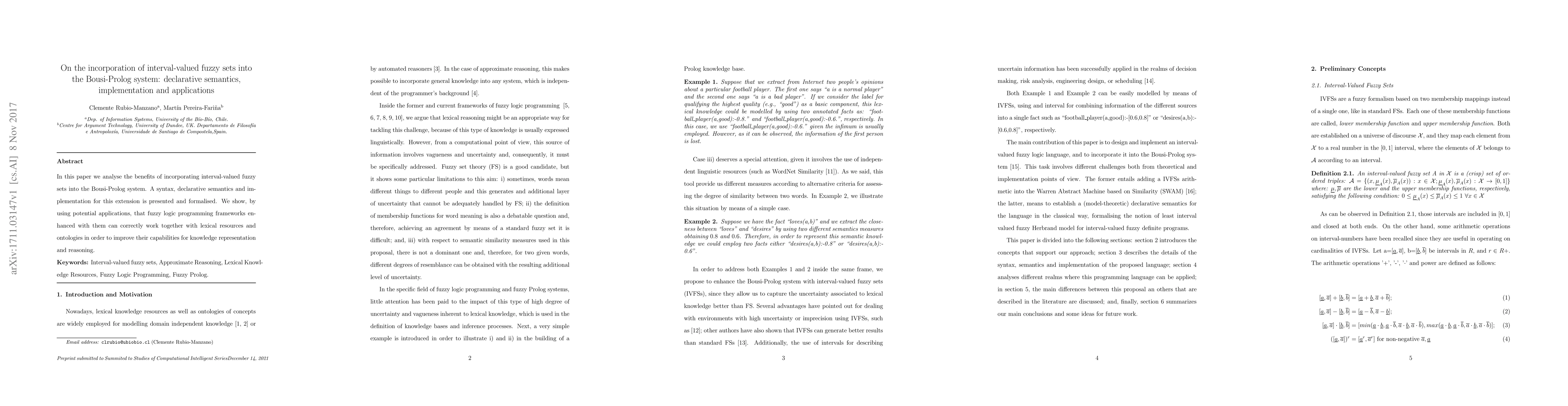 This paper presents an extension of the Bousi-Prolog system by incorporating interval-valued fuzzy sets, detailing its syntax, declarative semantics, and implementation. The study demonstrates enhanced capabilities for knowledge representation and reasoning through practical applications.