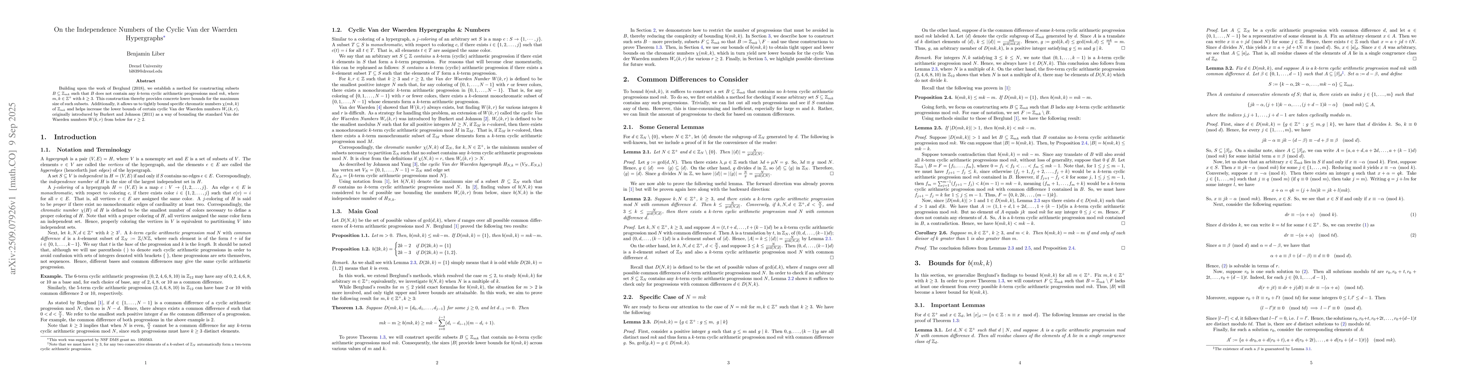 Building upon the work of Berglund (2018), we establish a method for constructing subsets $B \subseteq \mathbb{Z}_{mk}$ such that $B$ does not contain any $k$-term cyclic arithmetic progressions mod $mk$, where $m,k \in \mathbb{Z}^+$ with $k \geq 3$. This construction thereby provides concrete lower bounds for the maximum size of such subsets. Additionally, it allows us to tightly bound specific chromatic numbers $\chi(mk,k)$ of $\mathbb{Z}_{mk}$ and helps increase the lower bounds of certain cyclic Van der Waerden numbers $W_{c}(k,r)$, originally introduced by Burkert and Johnson (2011) as a way of bounding the standard Van der Waerden numbers $W(k,r)$ from below for $r \geq 2$.