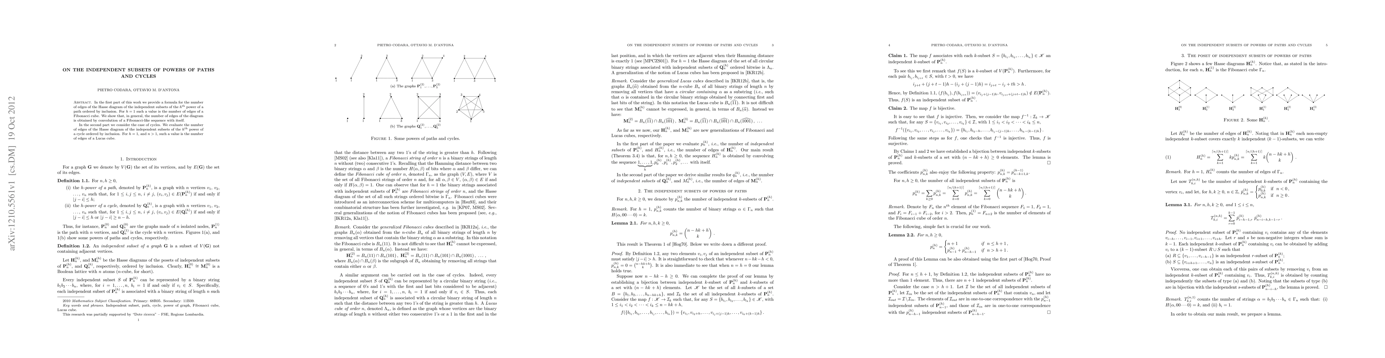 In the first part of this work we provide a formula for the number of edges of the Hasse diagram of the independent subsets of the h-th power of a path ordered by inclusion. For h=1 such a value is the number of edges of a Fibonacci cube. We show that, in general, the number of edges of the diagram is obtained by convolution of a Fibonacci-like sequence with itself. In the second part we consider the case of cycles. We evaluate the number of edges of the Hasse diagram of the independent subsets of the h-th power of a cycle ordered by inclusion. For h=1, and n>1, such a value is the number of edges of a Lucas cube.