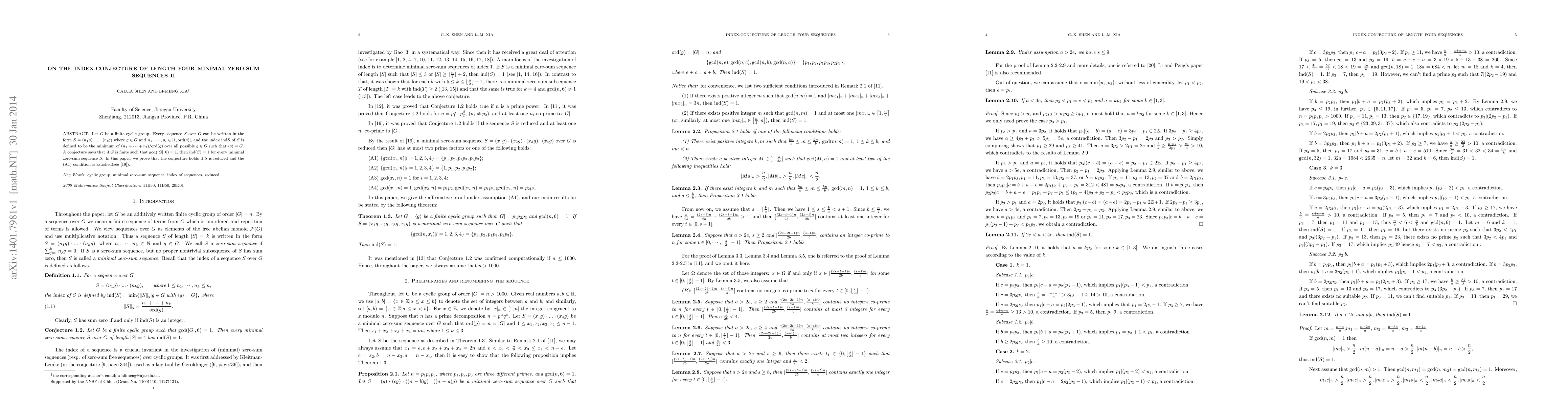 Let $G$ be a finite cyclic group. Every sequence $S$ over $G$ can be written in the form $S=(n_1g)\cdot...\cdot(n_lg)$ where $g\in G$ and $n_1,\cdots,n_l\in[1,{\hbox{\rm ord}}(g)]$, and the index $\ind S$ of $S$ is defined to be the minimum of $(n_1+\cdots+n_l)/\hbox{\rm ord}(g)$ over all possible $g\in G$ such that $\langle g\rangle=G$. A conjecture says that if $G$ is finite such that $\gcd(|G|,6)=1$, then $\ind(S)=1$ for every minimal zero-sum sequence $S$. In this paper, we prove that the conjecture holds if $S$ is reduced and the (A1) condition is satisfied(see [19]).