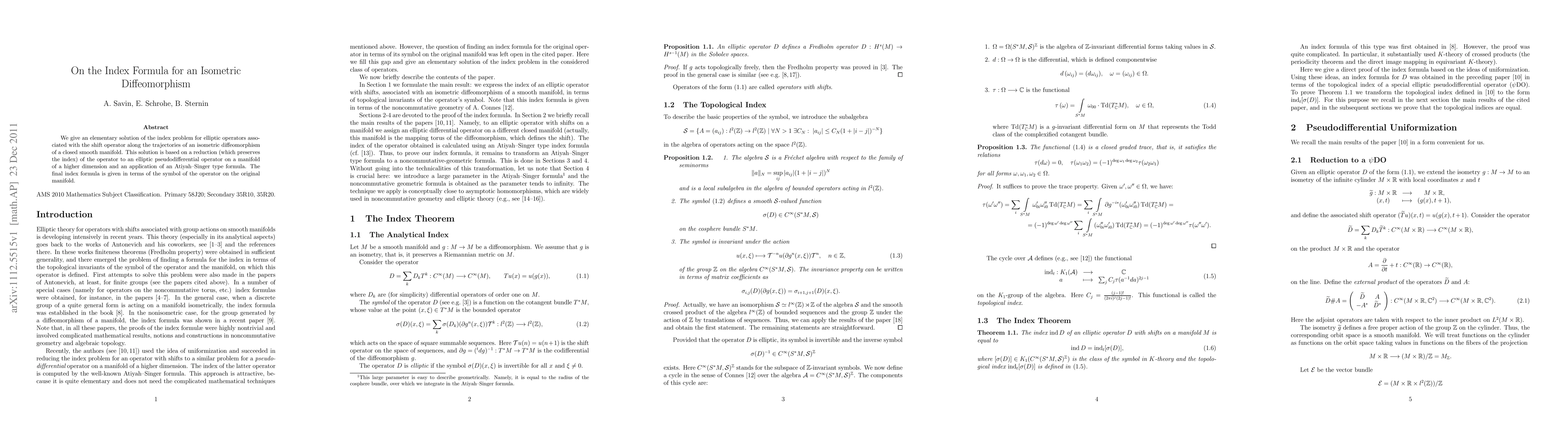 This paper provides an elementary solution to the index problem for elliptic operators linked to an isometric diffeomorphism on a closed smooth manifold, utilizing a reduction technique to a higher-dimensional pseudodifferential operator and applying an Atiyah-Singer type formula to derive the final index formula.