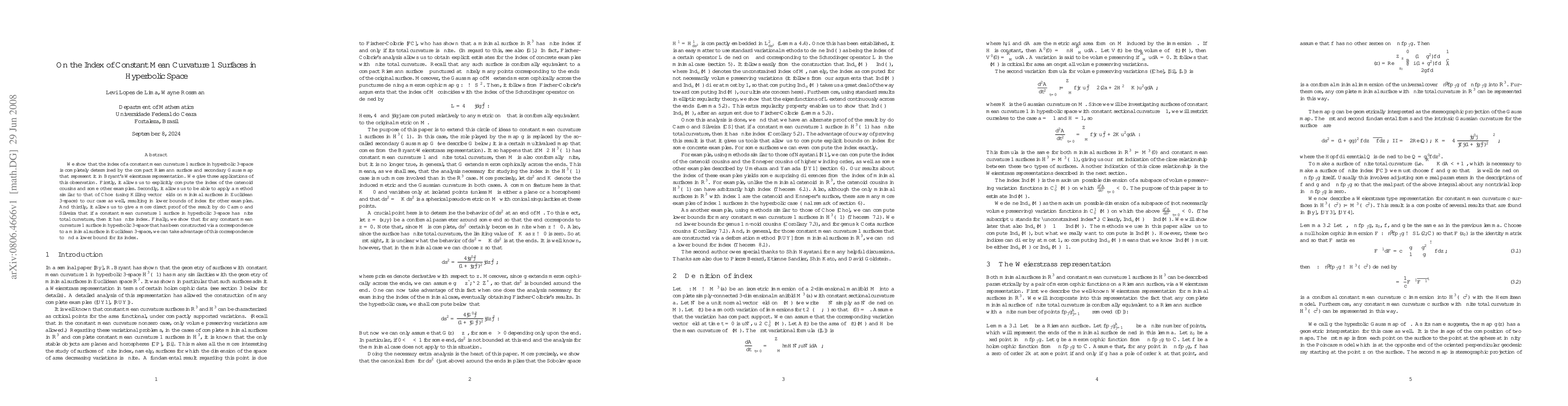 This paper demonstrates that the index of constant mean curvature 1 surfaces in hyperbolic 3-space is determined by the compact Riemann surface and secondary Gauss map in Bryant's Weierstrass representation, providing explicit index computations, lower index bounds, and a more direct proof of finite index for surfaces with finite total curvature.