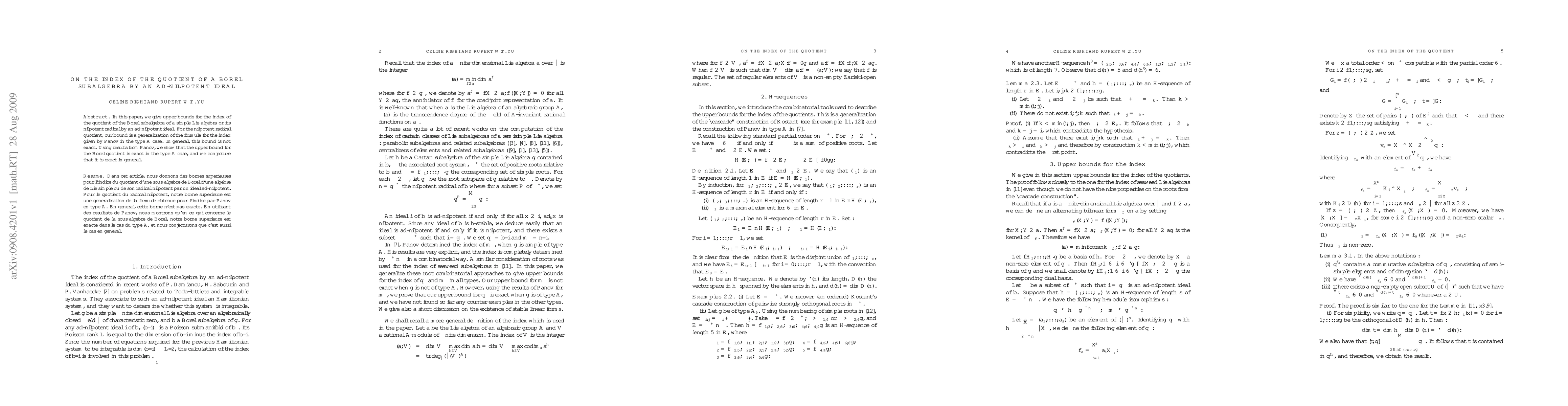 This paper provides upper bounds for the index of quotients involving Borel subalgebras and ad-nilpotent ideals in simple Lie algebras, generalizing a known formula for type A. The bound is exact for the nilpotent radical quotient in type A, and the authors conjecture its exactness in general.