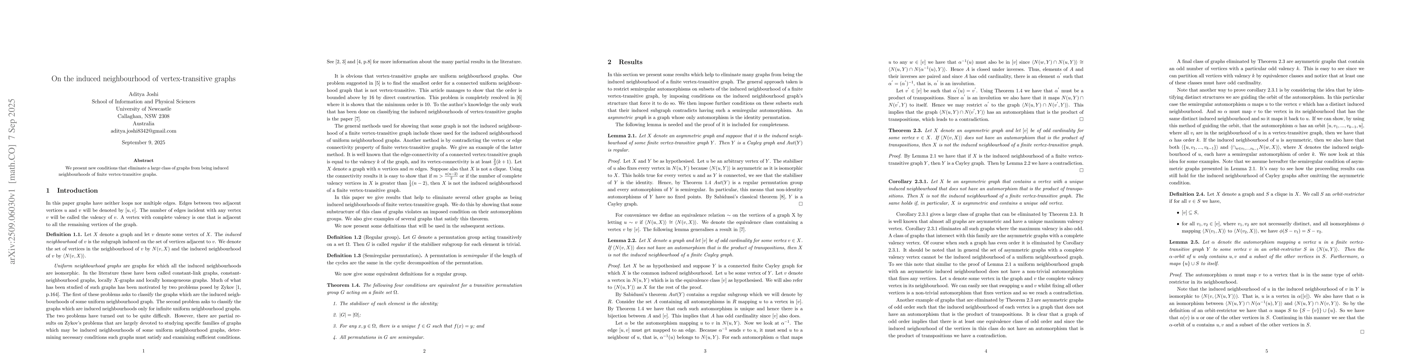 We present new conditions that eliminate a large class of graphs from being induced neighbourhoods of finite vertex-transitive graphs.