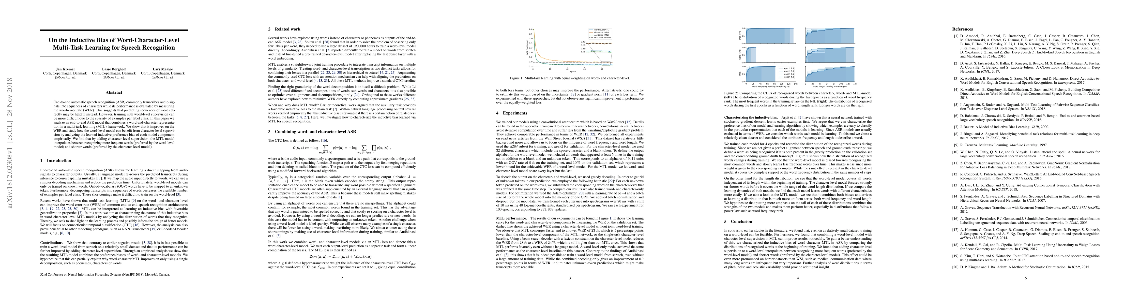 This paper investigates an end-to-end ASR model that employs multi-task learning combining word-and-character representations, demonstrating improved word-error rate (WER) performance. It analyzes the inductive bias of the model, showing that character-level supervision helps balance the model's preference towards frequent vs. shorter words.