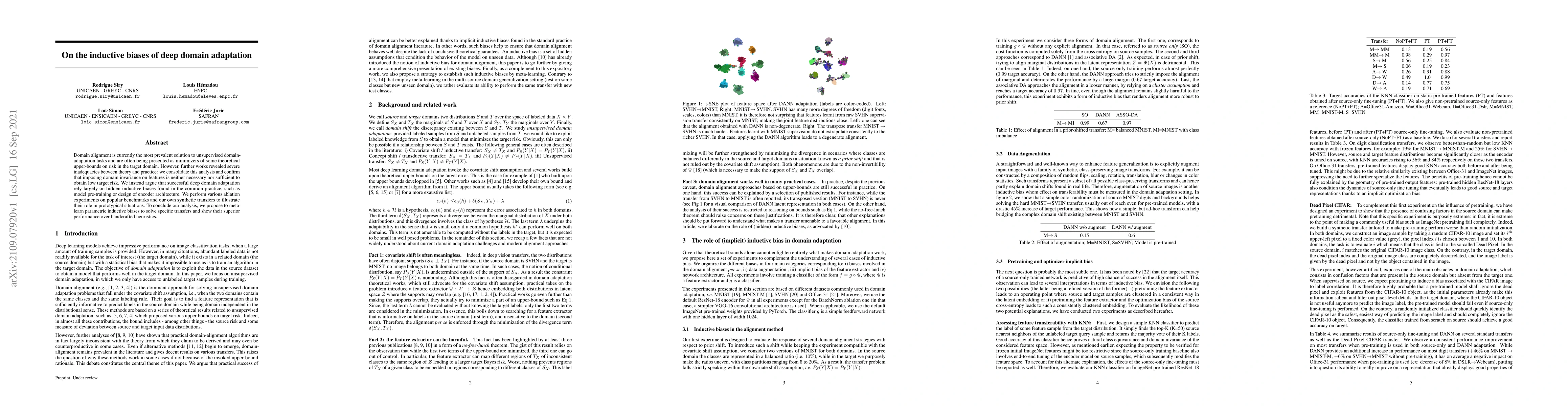 Domain alignment is currently the most prevalent solution to unsupervised domain-adaptation tasks and are often being presented as minimizers of some theoretical upper-bounds on risk in the target domain. However, further works revealed severe inadequacies between theory and practice: we consolidate this analysis and confirm that imposing domain invariance on features is neither necessary nor sufficient to obtain low target risk. We instead argue that successful deep domain adaptation rely largely on hidden inductive biases found in the common practice, such as model pre-training or design of encoder architecture. We perform various ablation experiments on popular benchmarks and our own synthetic transfers to illustrate their role in prototypical situations. To conclude our analysis, we propose to meta-learn parametric inductive biases to solve specific transfers and show their superior performance over handcrafted heuristics.