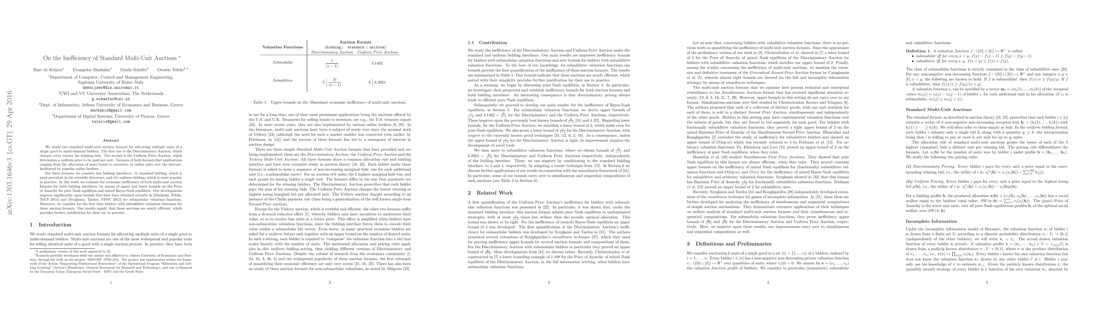 This paper evaluates the economic inefficiency of two standard multi-unit auction formats—the Discriminatory Auction and the Uniform Price Auction—under different bidding interfaces. It provides improved bounds on the Price of Anarchy for both pure and mixed equilibria, showing that these auctions are nearly efficient, thus supporting their practical application.