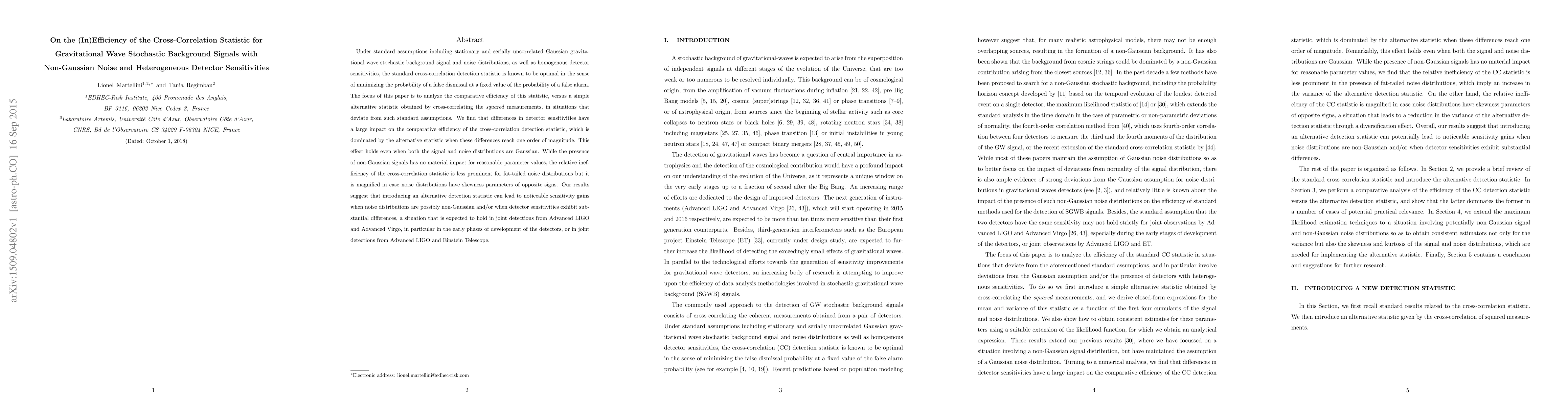 This paper examines the efficiency of the standard cross-correlation statistic for detecting gravitational wave stochastic background signals under non-Gaussian noise and heterogeneous detector sensitivities. It finds that the standard statistic is less efficient than an alternative squared cross-correlation statistic when detector sensitivities differ significantly.