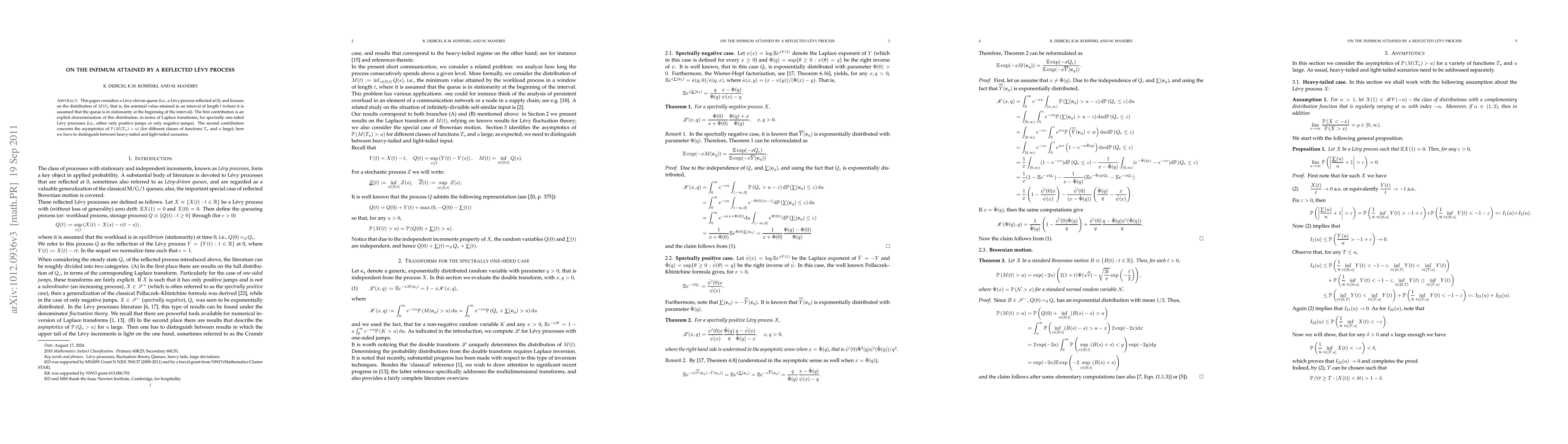This paper characterizes the distribution of minimal values attained by a reflected Lévy process in stationarity, using Laplace transforms for spectrally one-sided Lévy processes. It also explores the asymptotics of not reaching certain low values over time, differentiating between heavy-tailed and light-tailed scenarios.