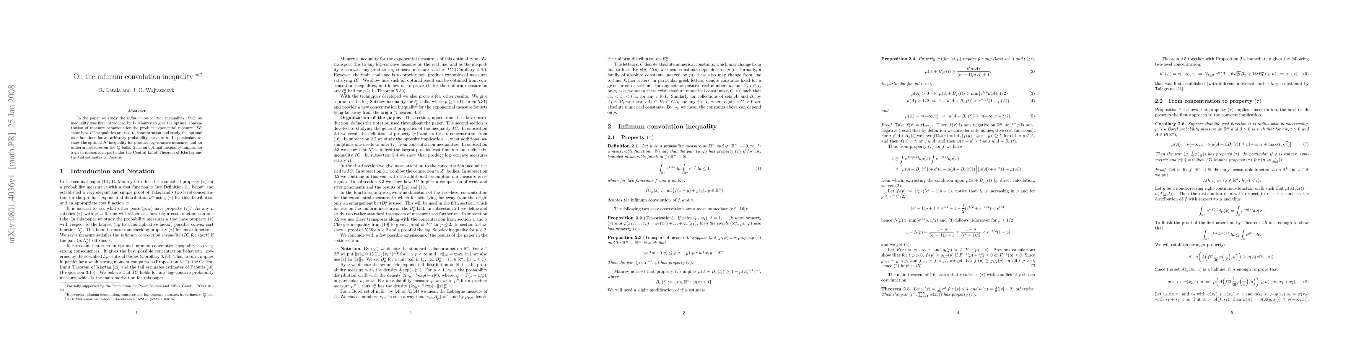 This paper explores infimum convolution inequalities (IC-inequalities) introduced by B. Maurey, linking them to concentration phenomena. It demonstrates optimal IC-inequalities for product log-concave measures and uniform measures on l_p^n balls, thereby implying results like the Central Limit Theorem and tail estimates.