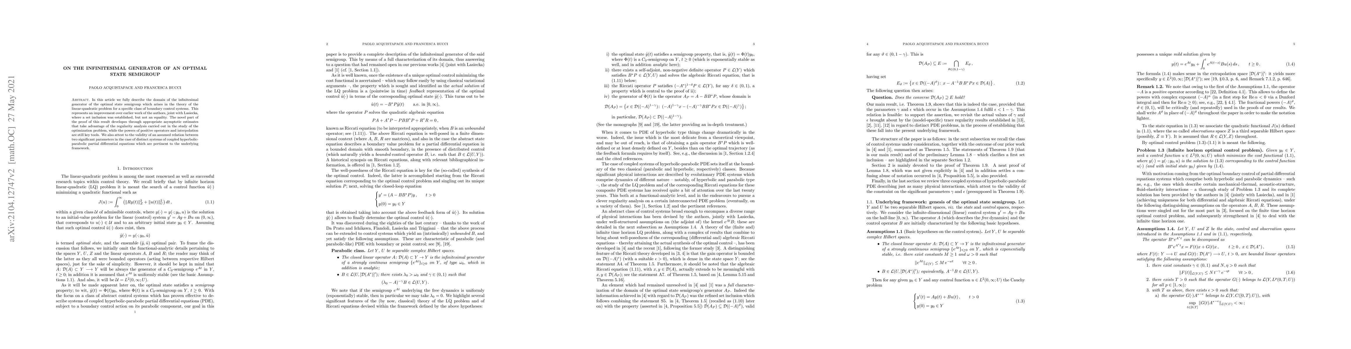 The paper presents a detailed proof of the domain equality for the infinitesimal generator of the optimal state semigroup, utilizing asymptotic estimates and interpolation theory.