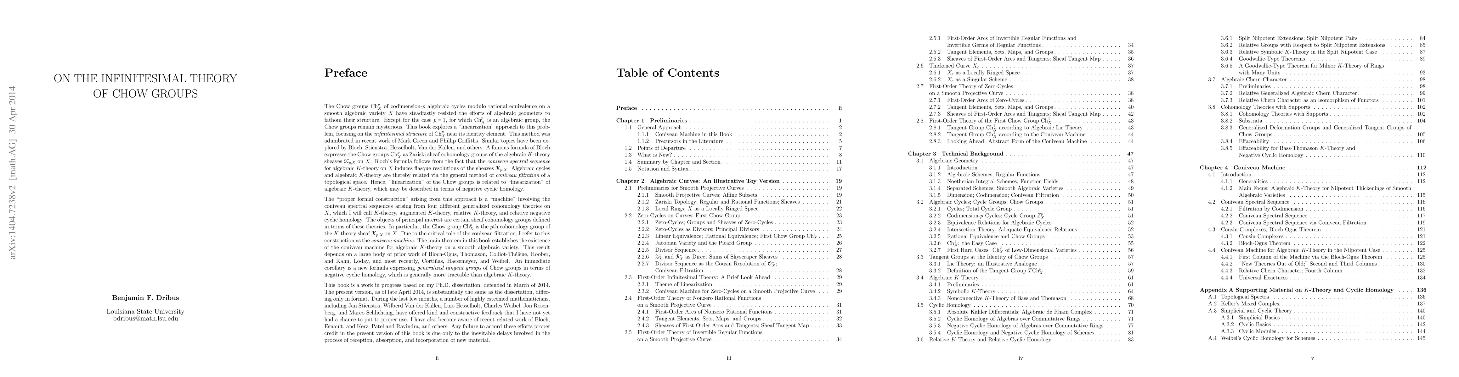 The Chow groups of codimension-p algebraic cycles modulo rational equivalence on a smooth algebraic variety X have steadfastly resisted the efforts of algebraic geometers to fathom their structure. This book explores a "linearization" approach to this problem, focusing on the infinitesimal structure of the Chow groups near their identity elements. This method was adumbrated in recent work of Mark Green and Phillip Griffiths. Similar topics have been explored by Bloch, Stienstra, Hesselholt, Van der Kallen, and others. A famous formula of Bloch expresses the Chow groups as Zariski sheaf cohomology groups of algebraic K-theory sheaves on X. "Linearization" of the Chow groups is thereby related to "linearization" of algebraic K-theory, which may be described in terms of negative cyclic homology. The "proper formal construction" arising from this approach is a "machine" involving the coniveau spectral sequences arising from four different generalized cohomology theories on X, with the last two sequences connected by the algebraic Chern character. Due to the critical role of the coniveau filtration, I refer to this construction as the coniveau machine. The main theorem in this book establishes the existence of the coniveau machine for algebraic K-theory on a smooth algebraic variety. An immediate corollary is a new formula expressing generalized tangent groups of Chow groups in terms of negative cyclic homology.