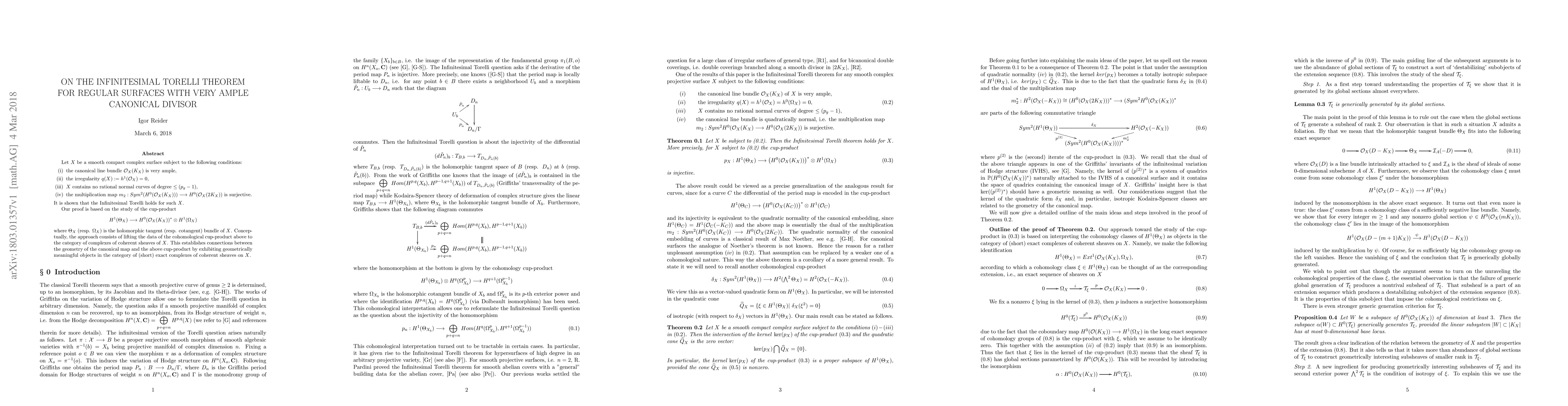 This paper proves the Infinitesimal Torelli theorem for smooth compact complex surfaces where the canonical line bundle is very ample, irregularity is zero, and no rational normal curves of certain degrees exist. The proof leverages the study of the cup-product between the holomorphic tangent and cotangent bundles to establish connections between the geometry of the canonical map and the cohomological cup-product.