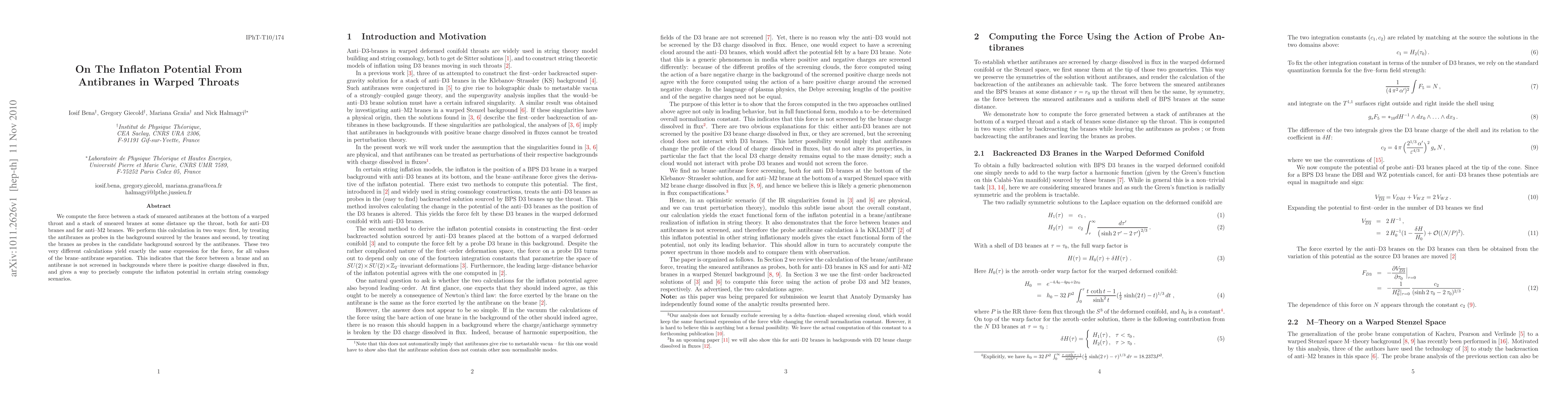 We compute the force between a stack of smeared antibranes at the bottom of a warped throat and a stack of smeared branes at some distance up the throat, both for anti-D3 branes and for anti-M2 branes. We perform this calculation in two ways: first, by treating the antibranes as probes in the background sourced by the branes and second, by treating the branes as probes in the candidate background sourced by the antibranes. These two very different calculations yield exactly the same expression for the force, for all values of the brane-antibrane separation. This indicates that the force between a brane and an antibrane is not screened in backgrounds where there is positive charge dissolved in flux, and gives a way to precisely compute the inflaton potential in certain string cosmology scenarios.