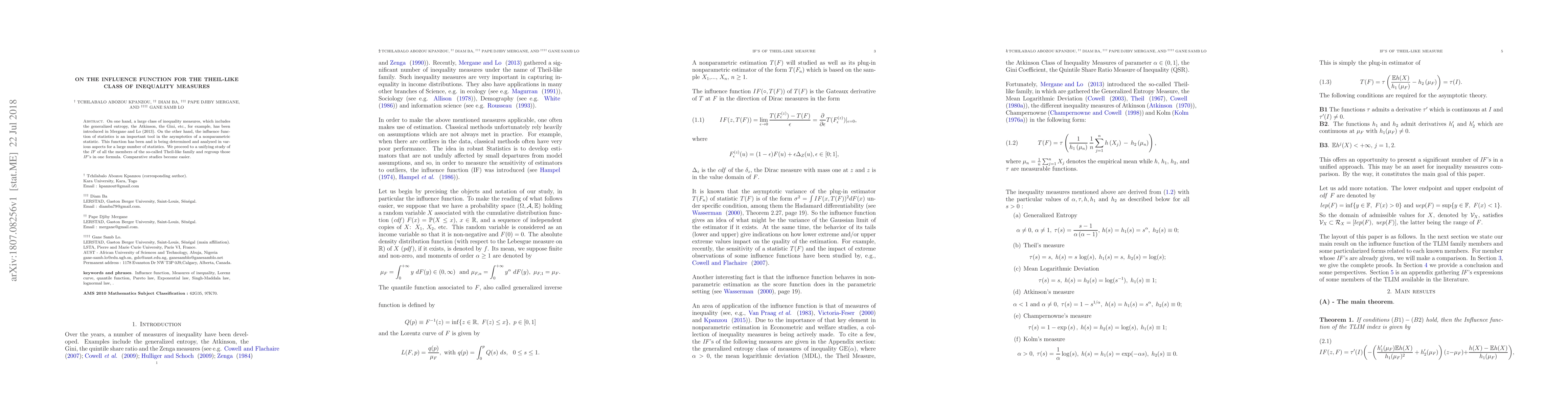 On one hand, a large class of inequality measures, which includes the generalized entropy, the Atkinson, the Gini, etc., for example, has been introduced in Mergane and Lo (2013). On the other hand, the influence function of statistics is an important tool in the asymptotics of a nonparametric statistic. This function has been and is being determined and analysed in various aspects for a large number of statistics. We proceed to a unifying study of the IF of all the members of the so-called Theil-like family and regroup those IF's in one formula. Comparative studies become easier.