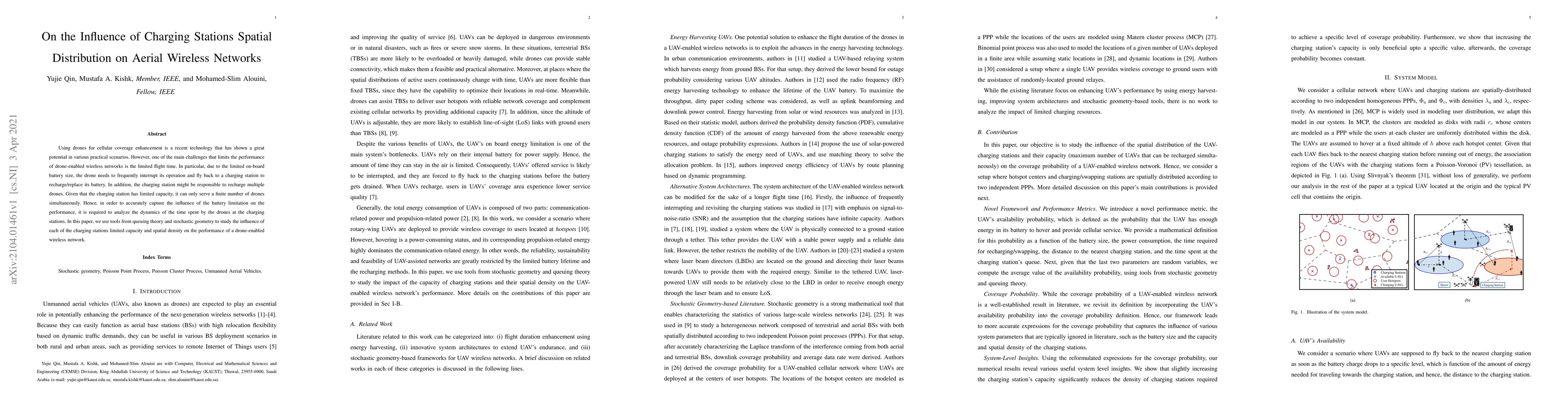 This paper investigates how the spatial distribution and limited capacity of charging stations affect drone-enabled wireless networks, employing queuing theory and stochastic geometry to analyze the impact of drones' frequent recharging needs on network performance.