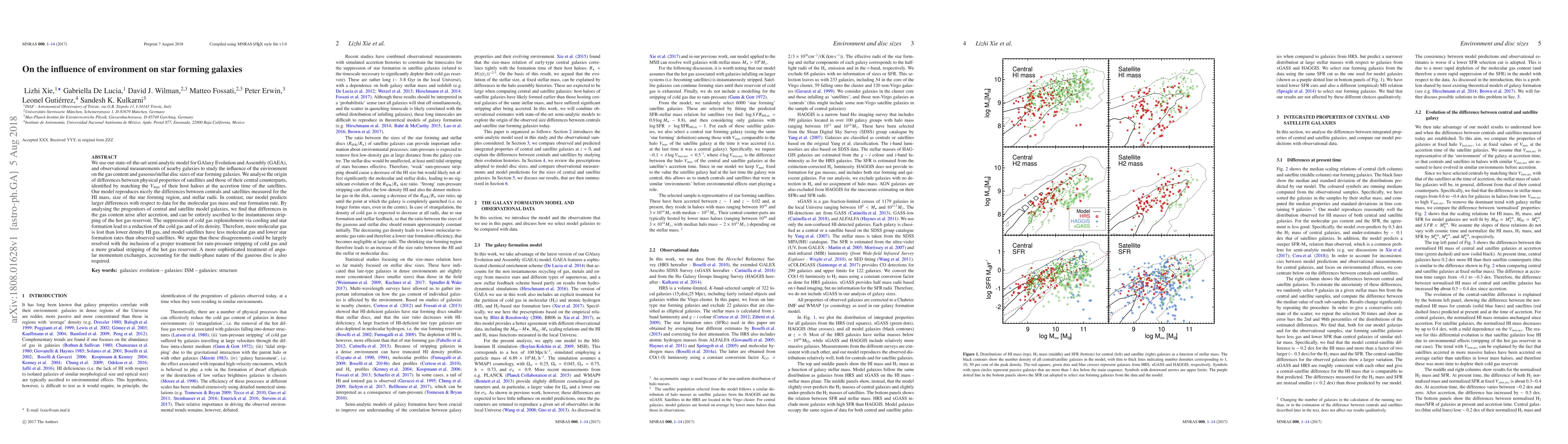 This paper uses a semi-analytic model to study how environmental factors influence the gas content and sizes of star-forming galaxies, finding that satellites have less molecular gas and lower star formation rates than central galaxies due to gas stripping. To improve model accuracy, it suggests incorporating better treatments for gas stripping and angular momentum exchanges.