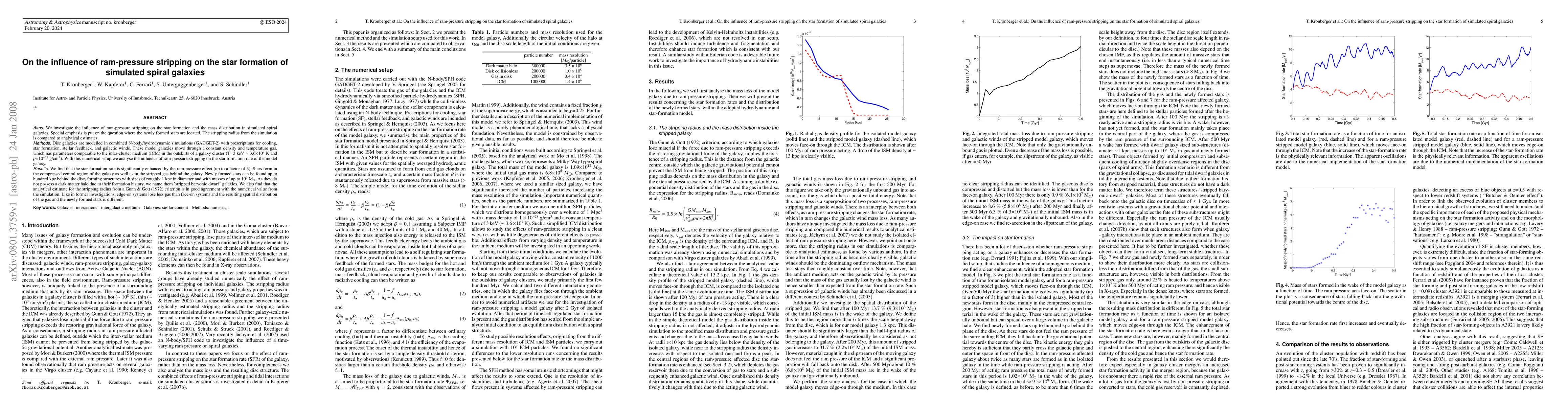 This study uses N-body/hydrodynamic simulations to explore how ram-pressure stripping affects star formation in spiral galaxies, finding that it significantly boosts star formation up to threefold. Newly formed stars appear in the compressed central region and in the stripped gas behind the galaxy, forming 'stripped baryonic dwarf' galaxies up to 100 kpc away.