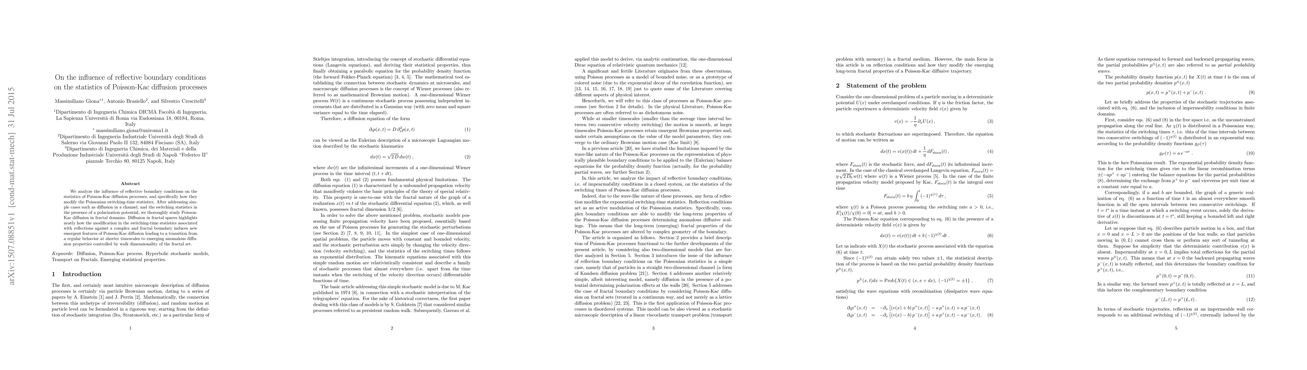 This paper investigates how reflective boundary conditions affect the statistical properties of Poisson-Kac diffusion processes, particularly altering the Poissonian switching-time statistics. It reveals that diffusion in fractal domains, due to boundary reflections, leads to a transition from regular to anomalous diffusion, influenced by the fractal set's walk dimensionality.