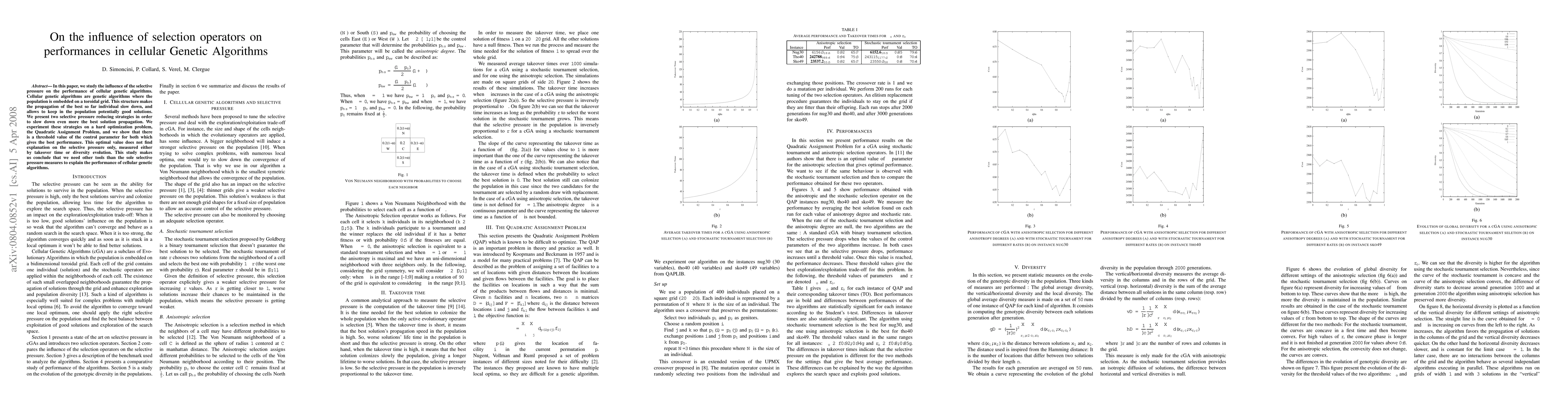 This paper investigates the impact of selective pressure on cellular genetic algorithms, proposing two strategies to further reduce it. Experiments on the quadratic assignment problem reveal an optimal control parameter value for best performance, suggesting that selective pressure alone is insufficient to fully explain algorithm performance.